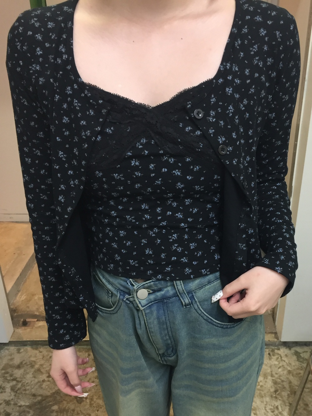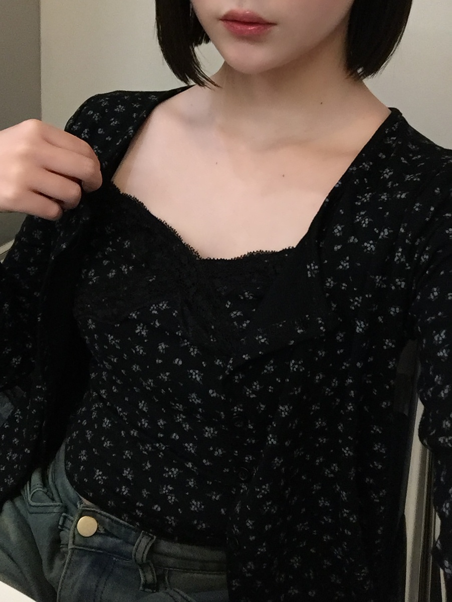 SGD31462 【SET】플라워 레이스 나시 가디건