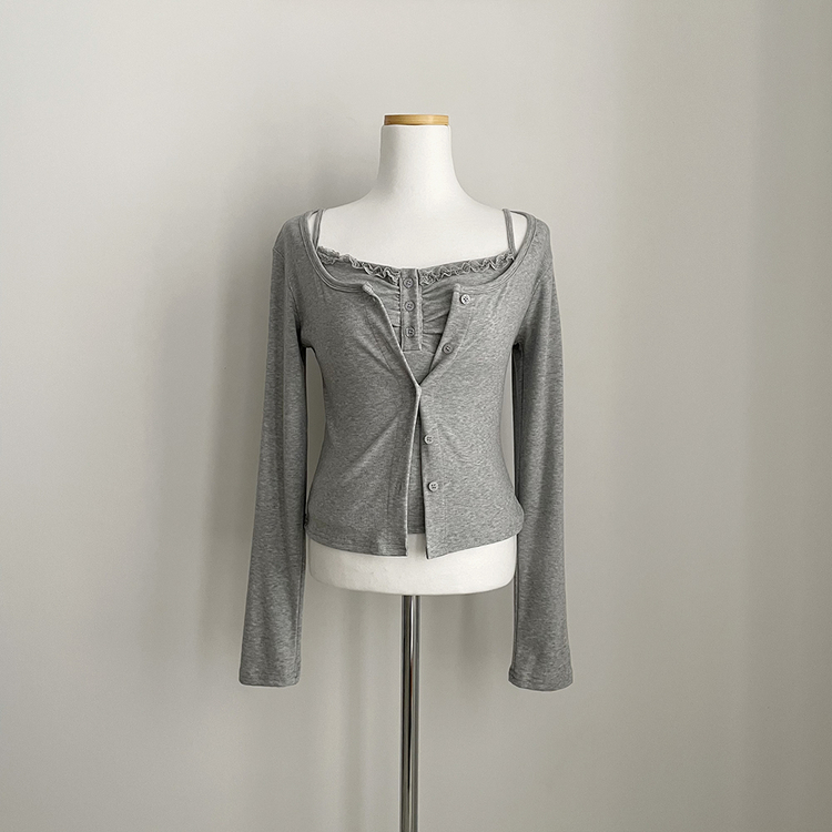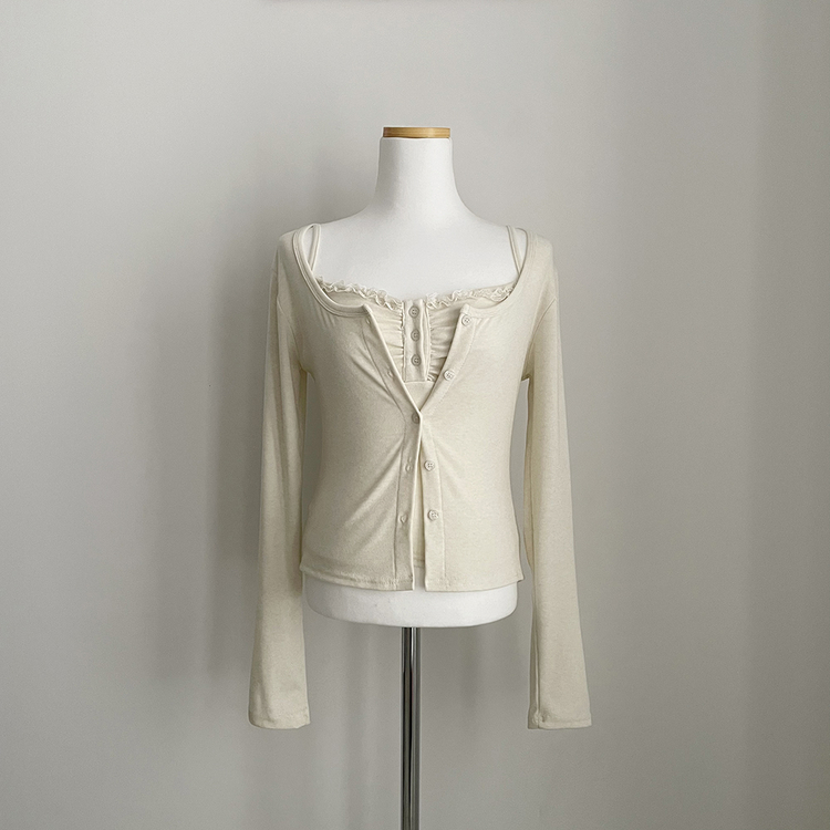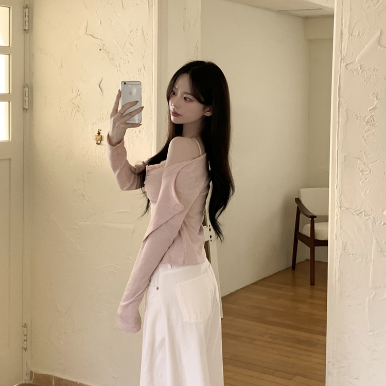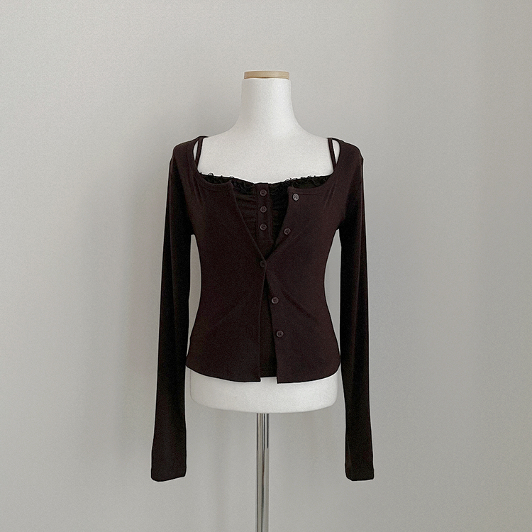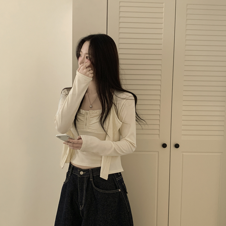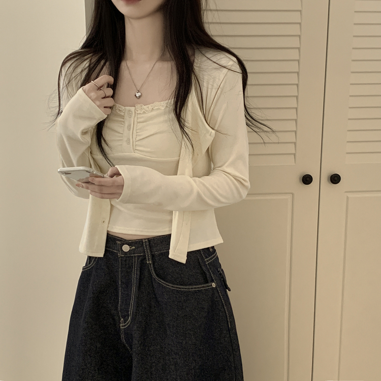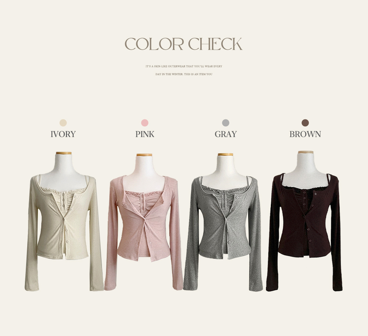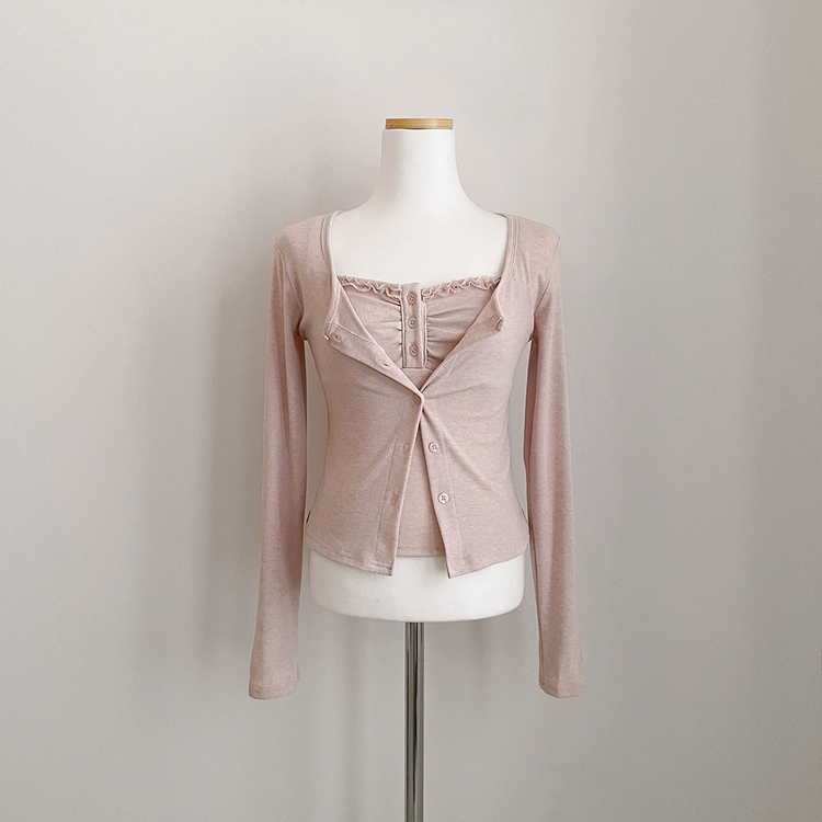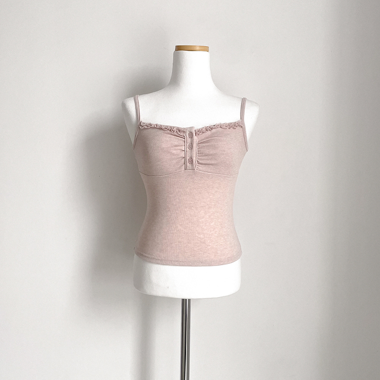 SGD31485 청순벚꽃룩 레이스 프릴 버튼 셔링 크롭 나시 크롭 핑크 가디건 레이어드 세트