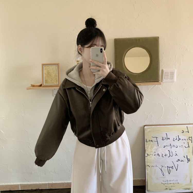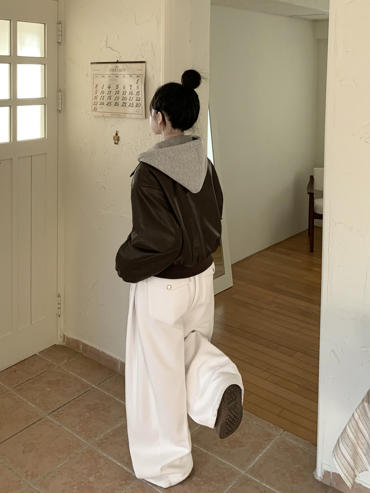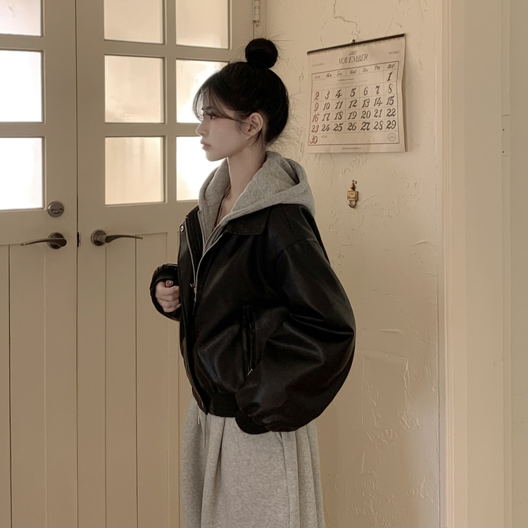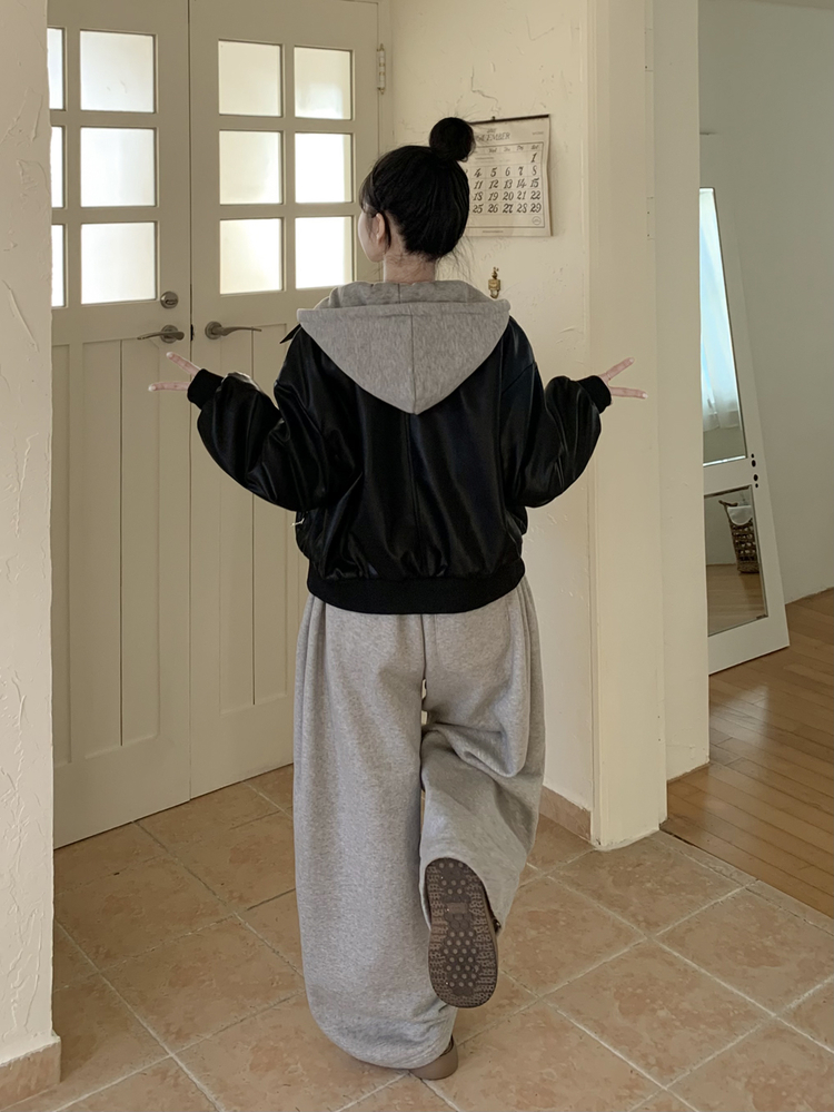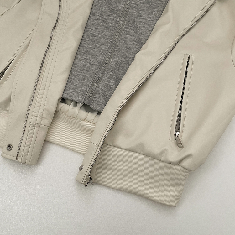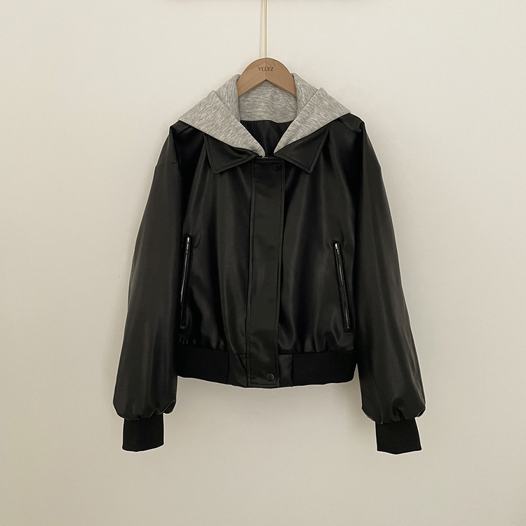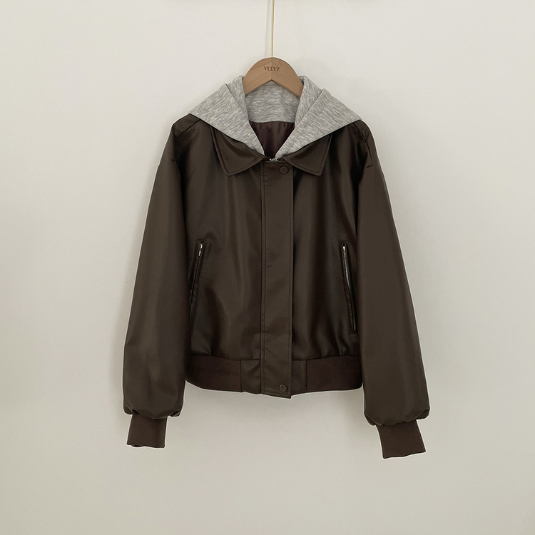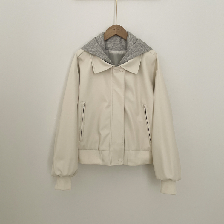 SJP20630 레이어드 후드 레더 아방핏 봄 후드점퍼 라이더 크롭자켓