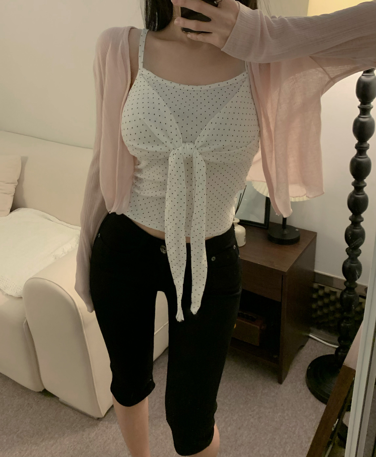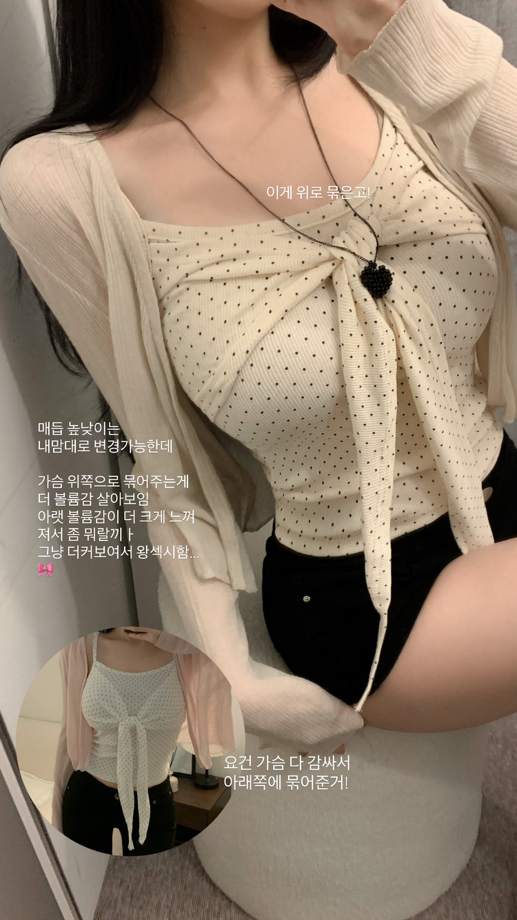 STS243354 마리 도트 땡땡이 리본 꼬임 매듭 잔골지 끈나시 4colors