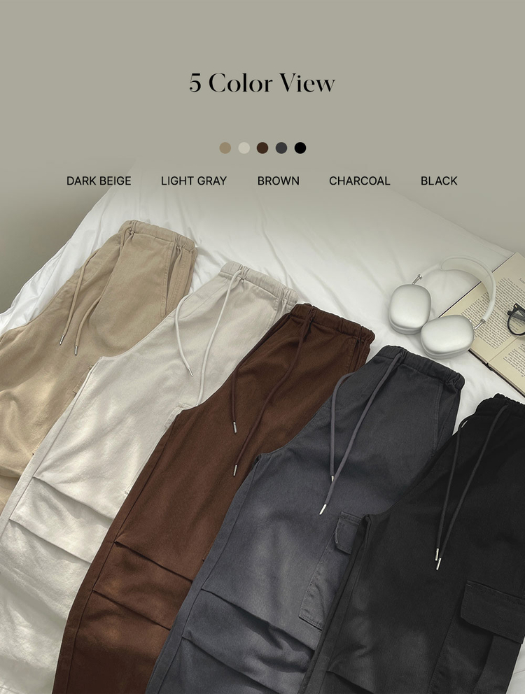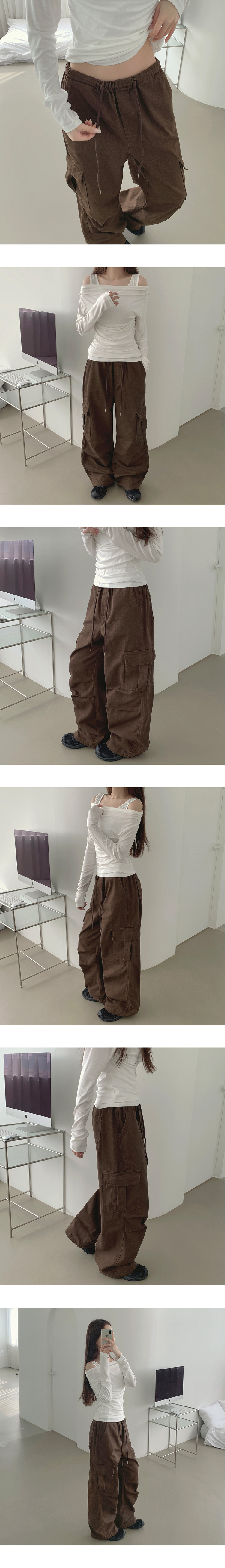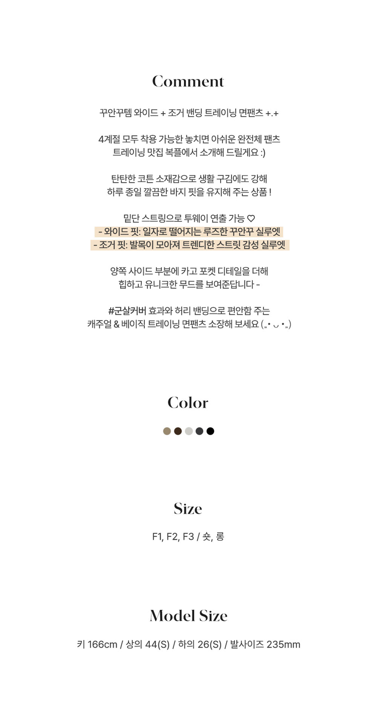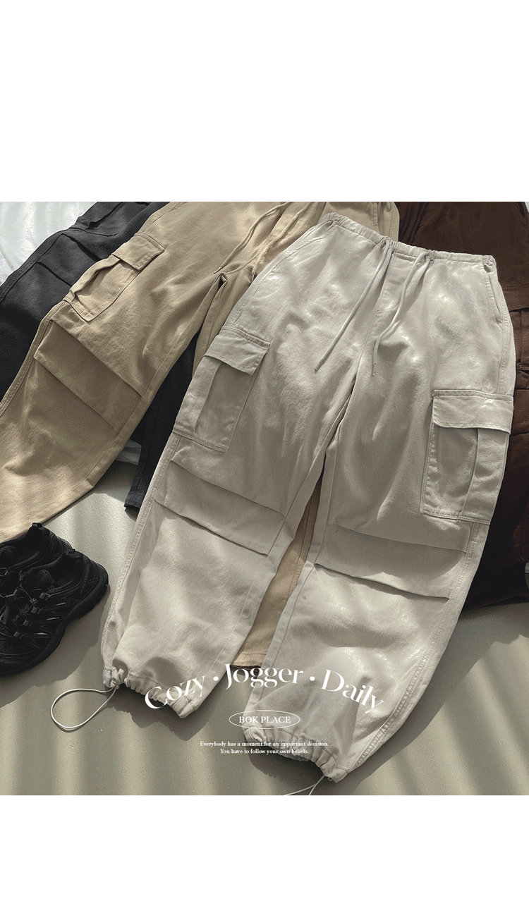 SPS38925 3XL코튼 투웨이 포켓 무릎 셔링 와이드 밴딩 팬츠