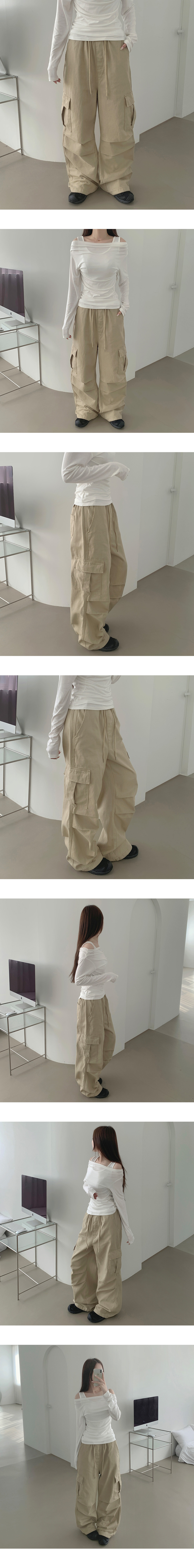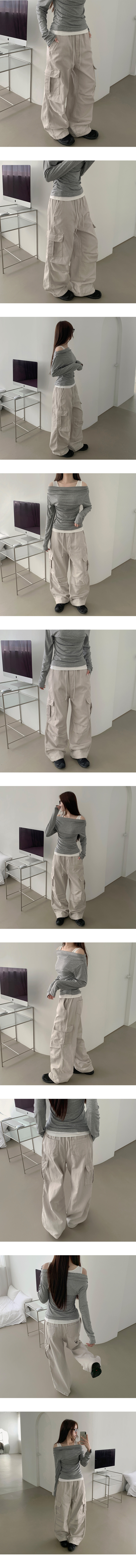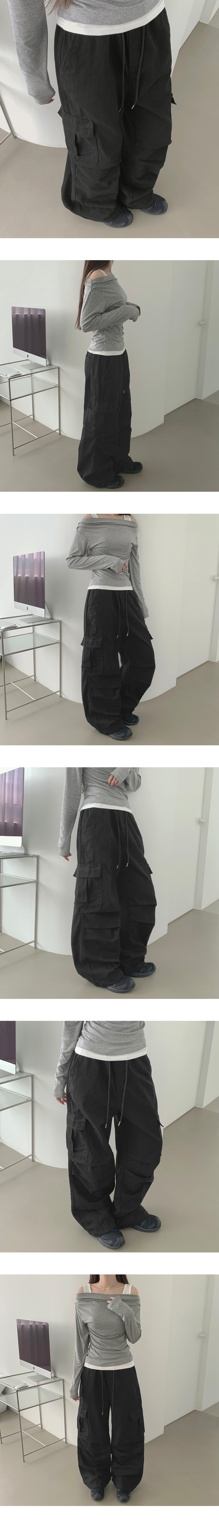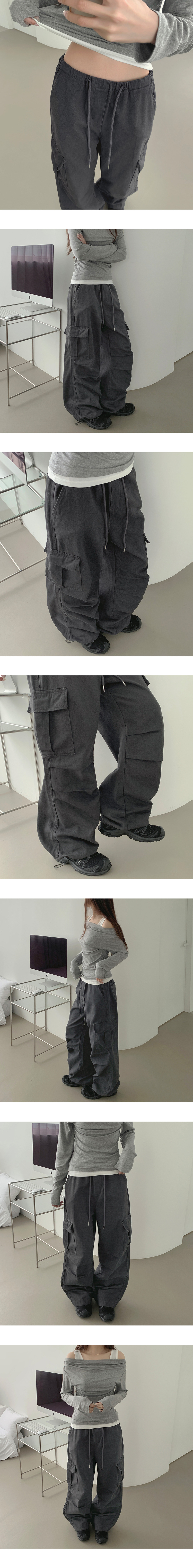 SPS38925 3XL코튼 투웨이 포켓 무릎 셔링 와이드 밴딩 팬츠