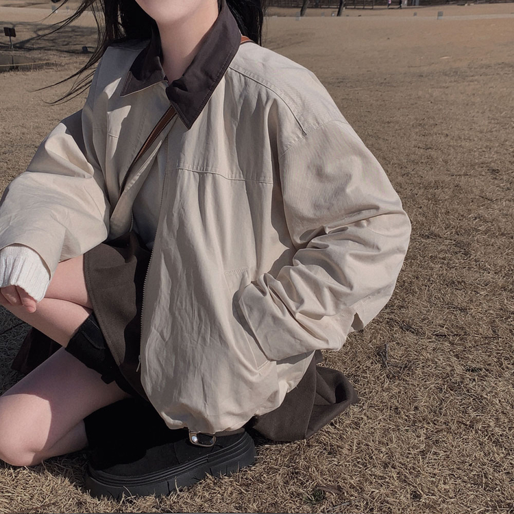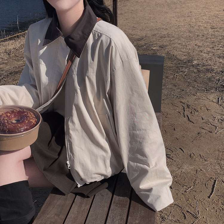 SJP20655 특별한 배색포인트아이즈 배색 카라 루즈핏 스트링 자켓 점퍼