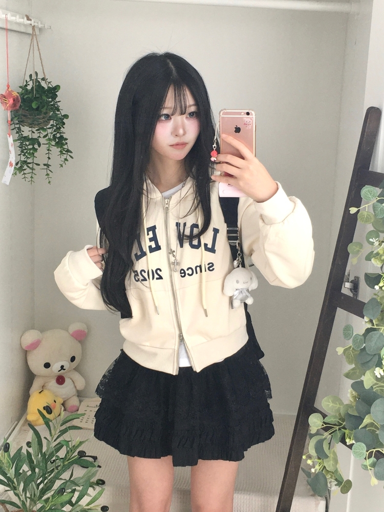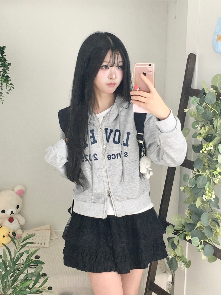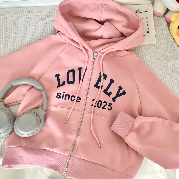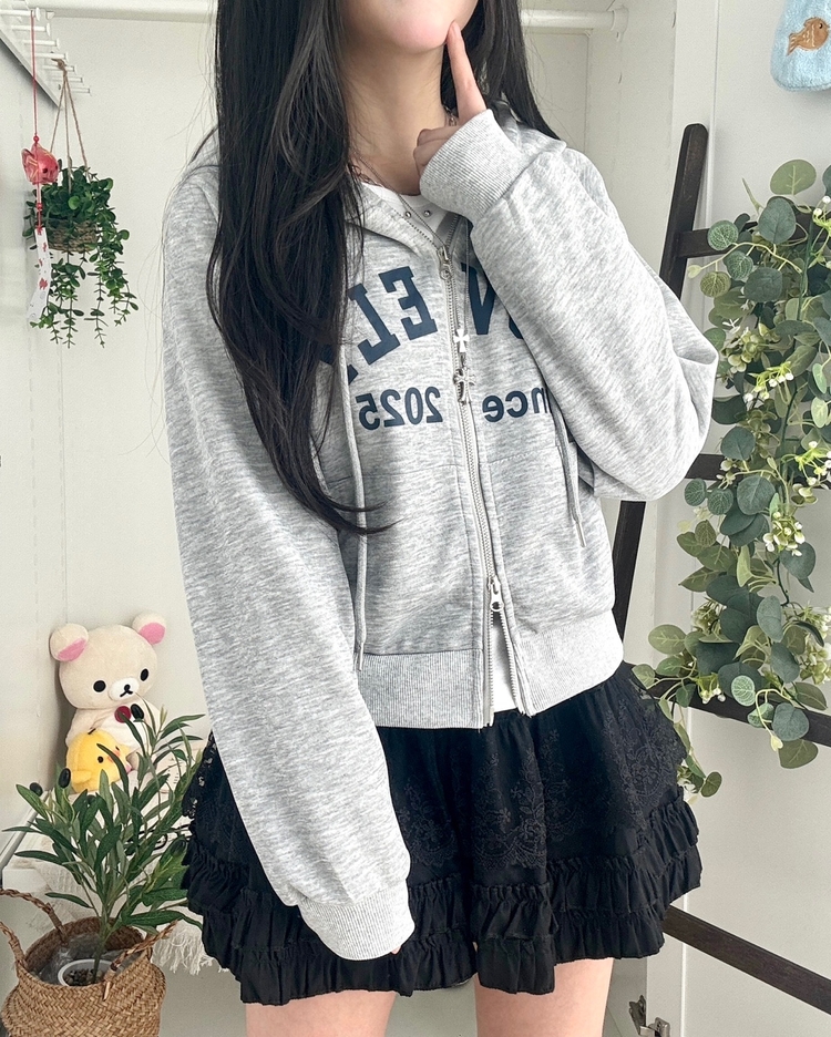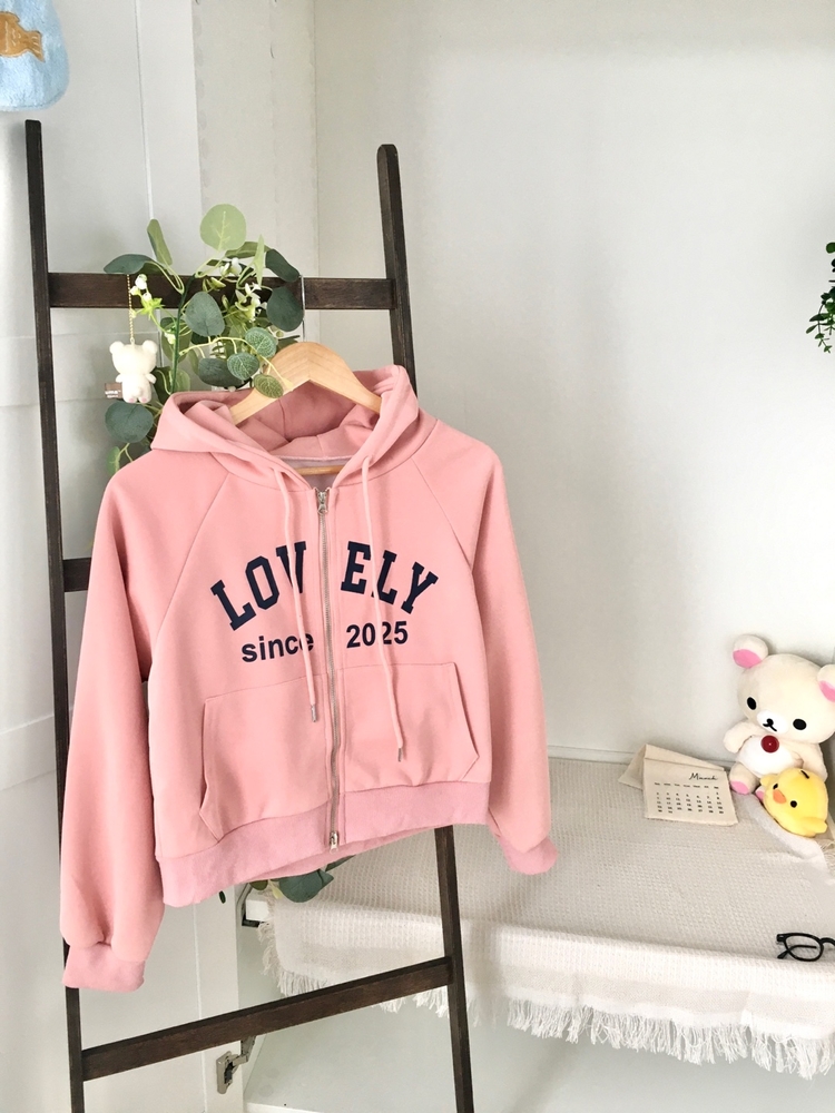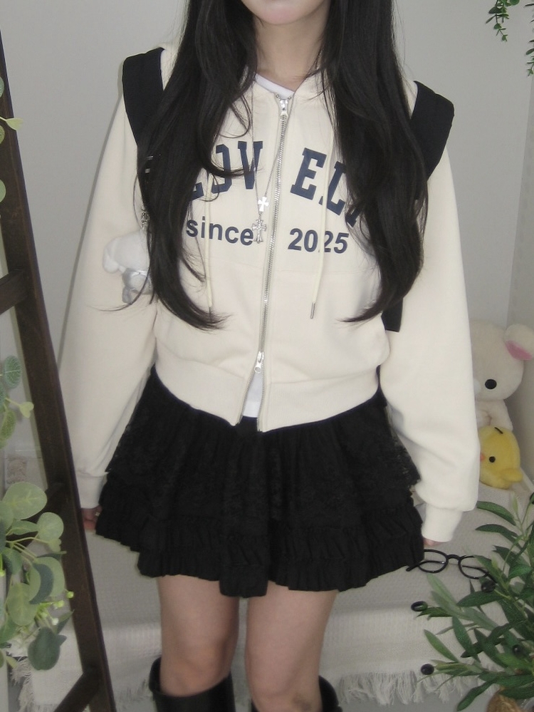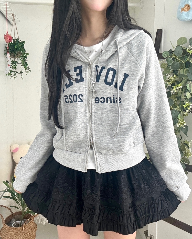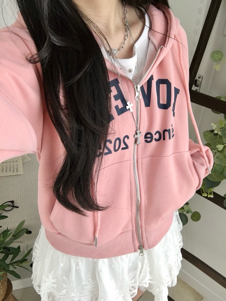 SJP20687 교복위에 툭 세미크롭 빈티지 레터링 러블리 후드집업 교복 아우터 봄 가을 학생 꾸안꾸 캐주얼 개강 개학