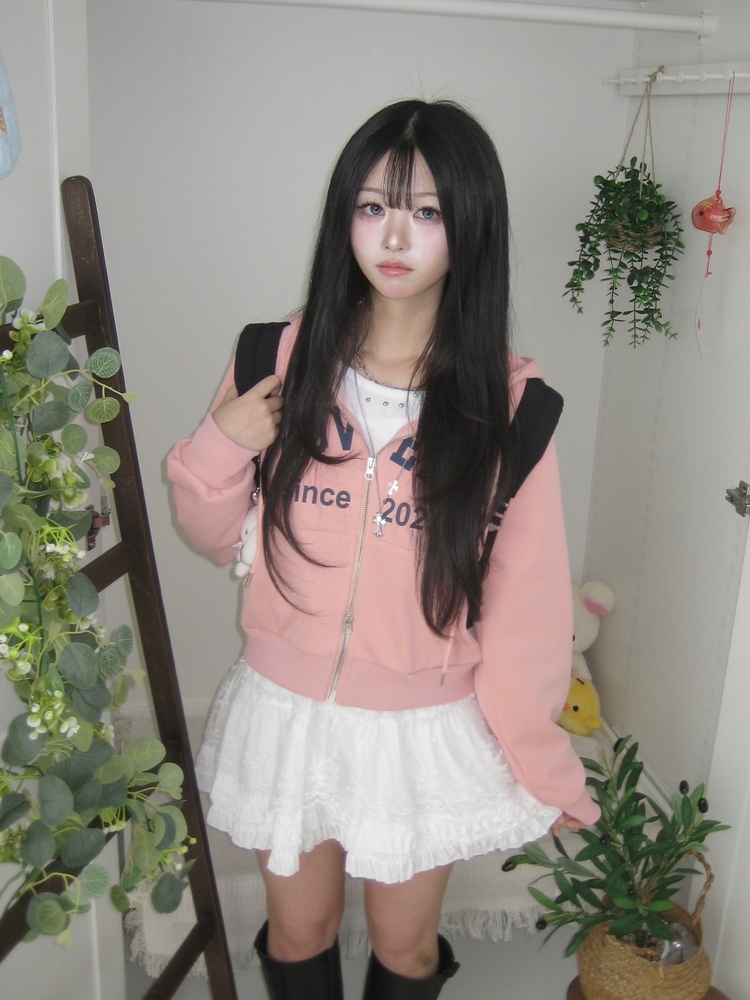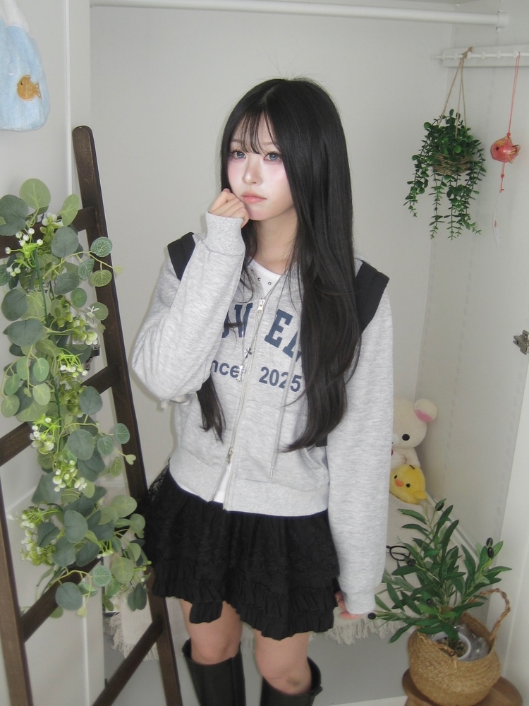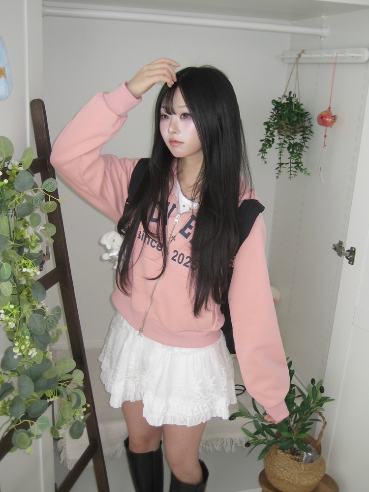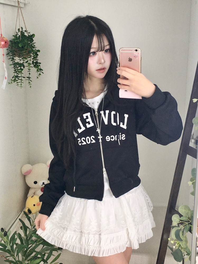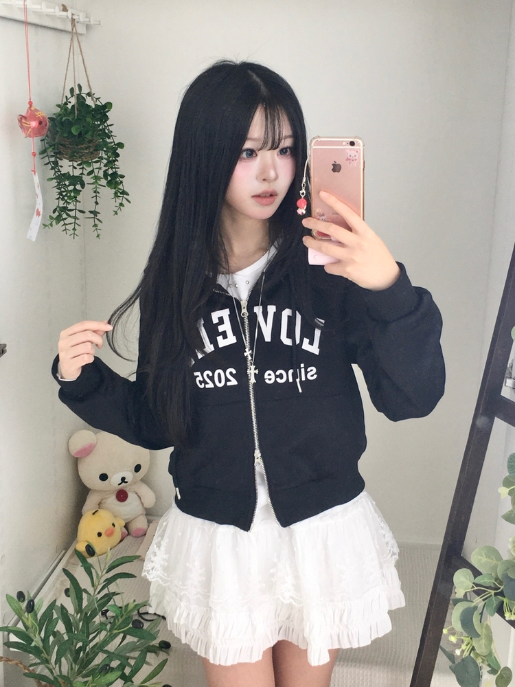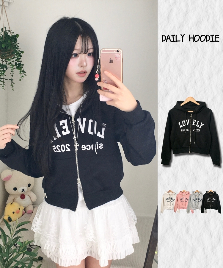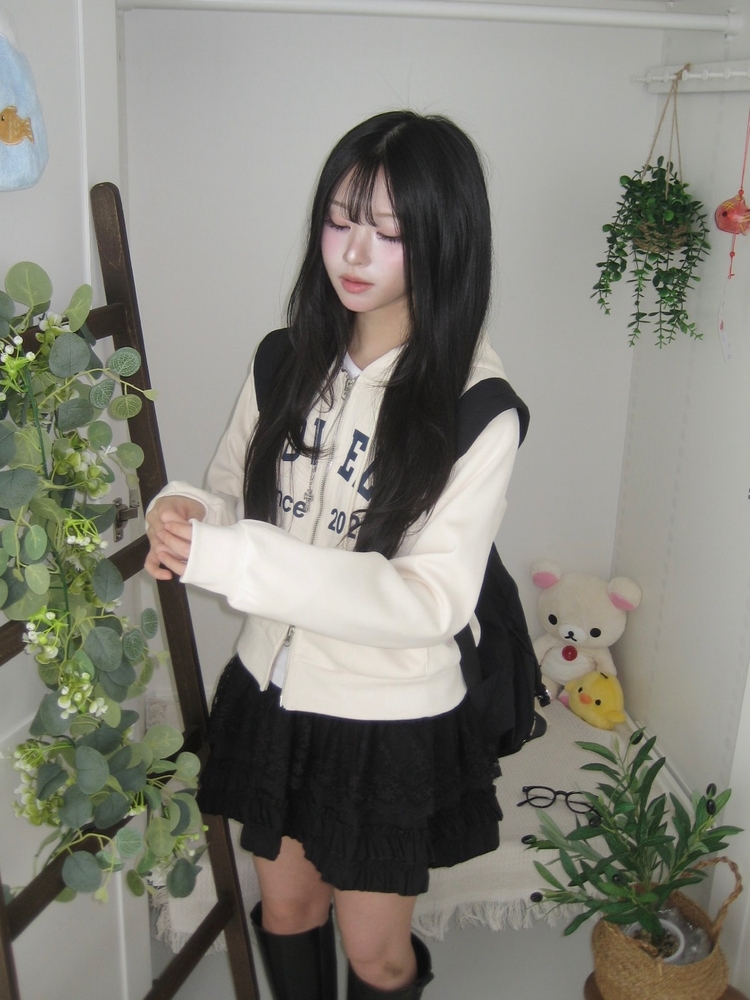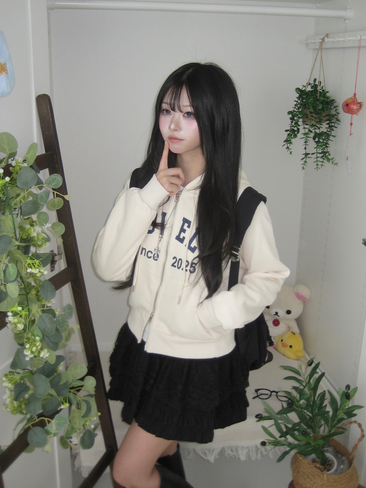 SJP20687 교복위에 툭 세미크롭 빈티지 레터링 러블리 후드집업 교복 아우터 봄 가을 학생 꾸안꾸 캐주얼 개강 개학