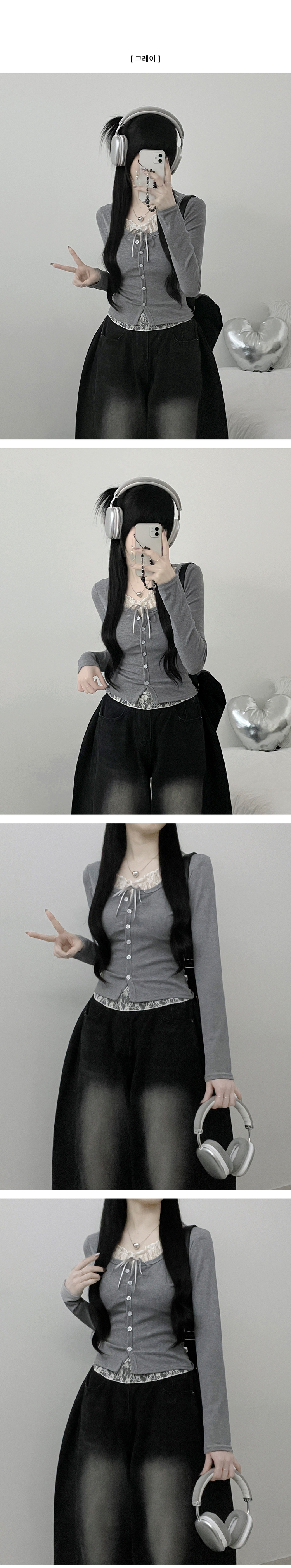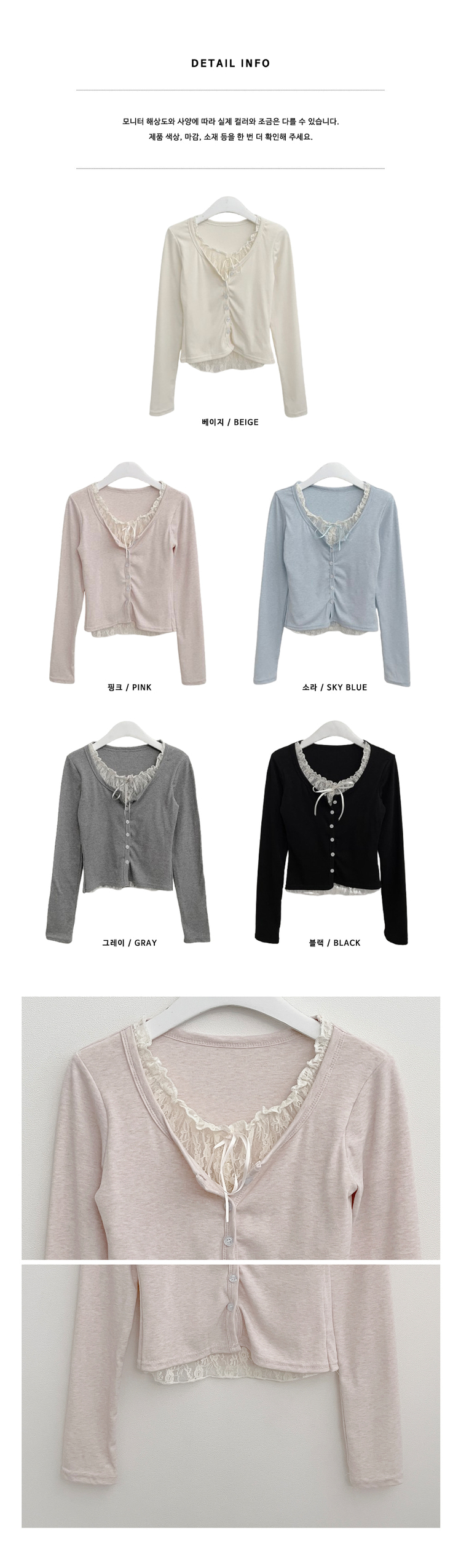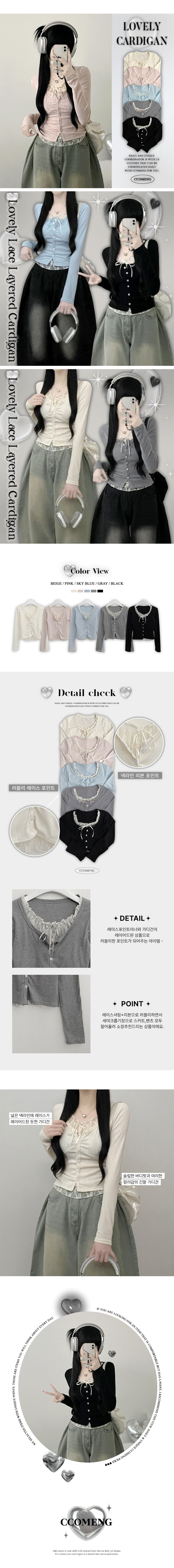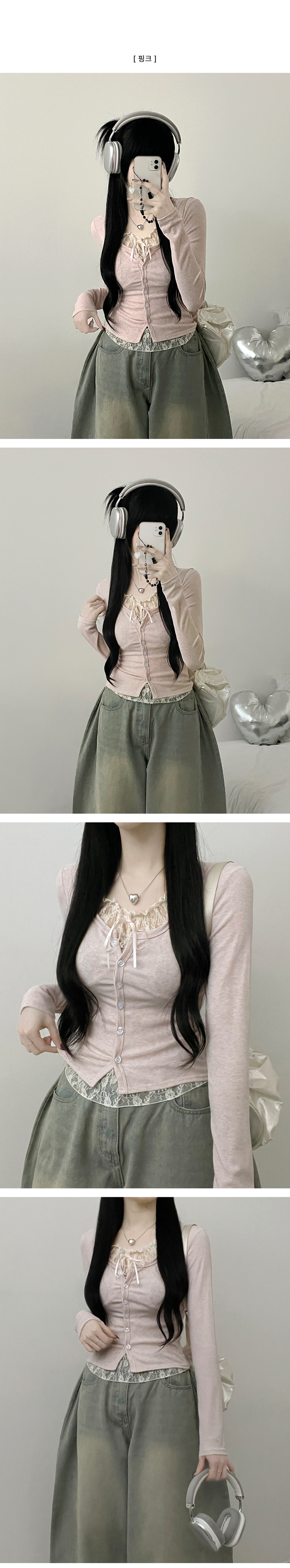 SGD31629 밀크티레이스리본레이어드긴팔가디건