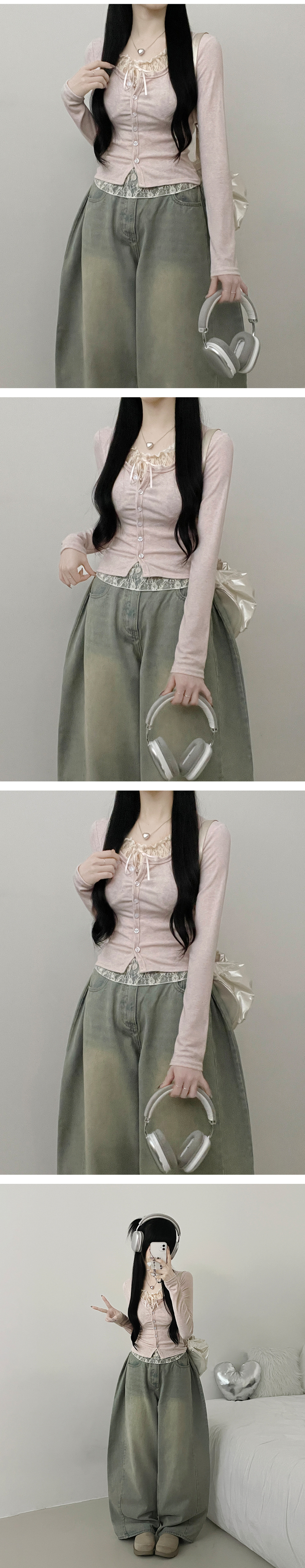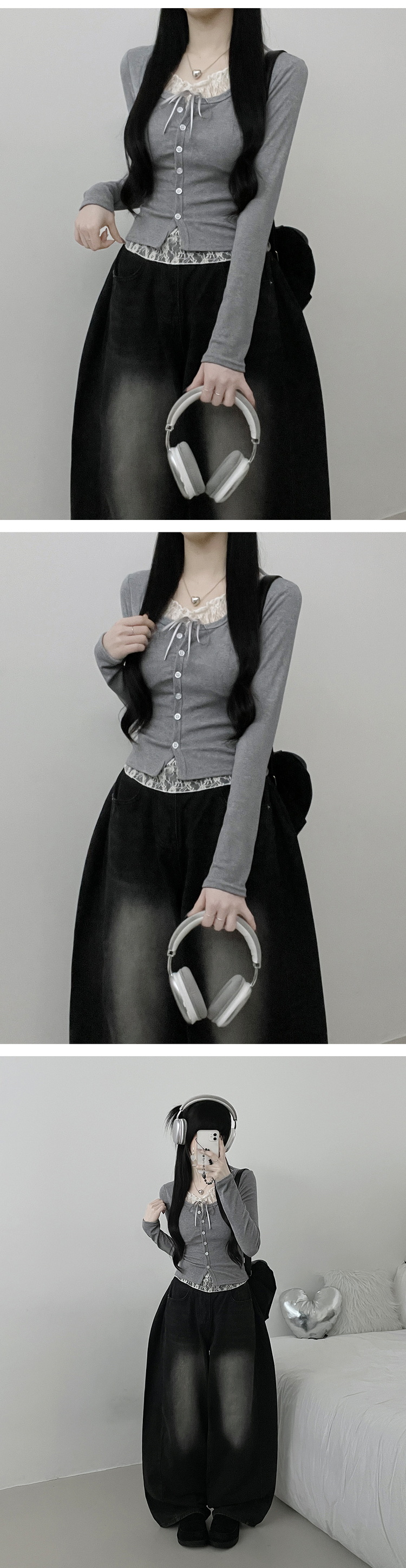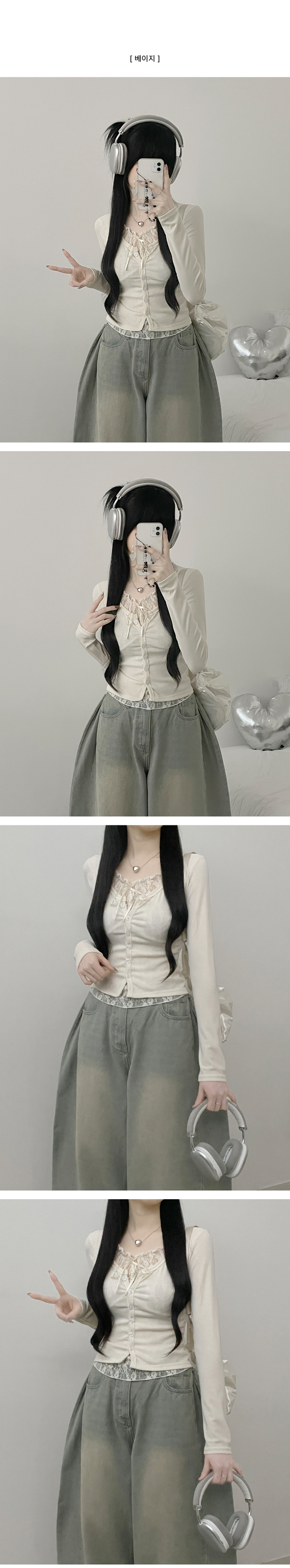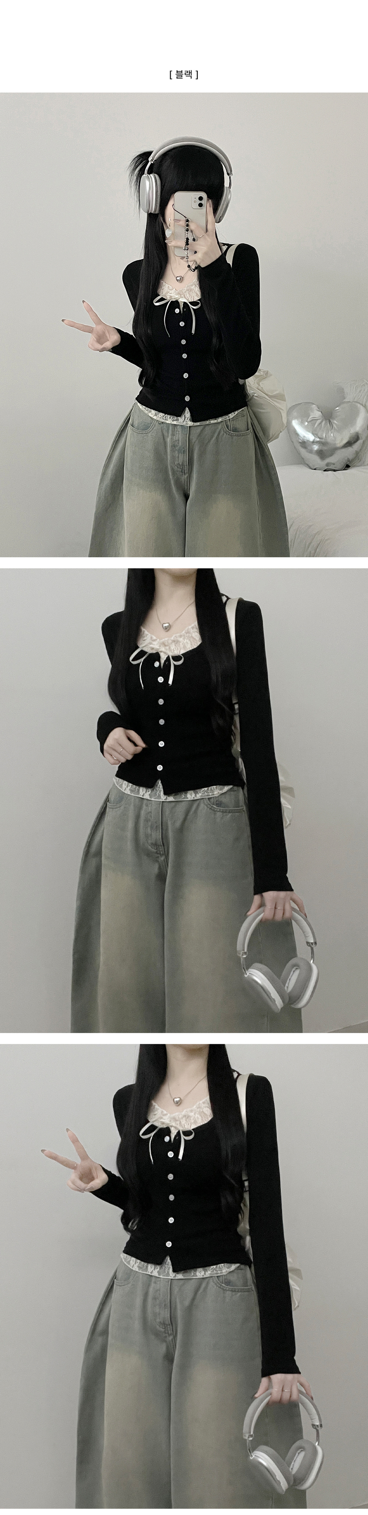 SGD31629 밀크티레이스리본레이어드긴팔가디건