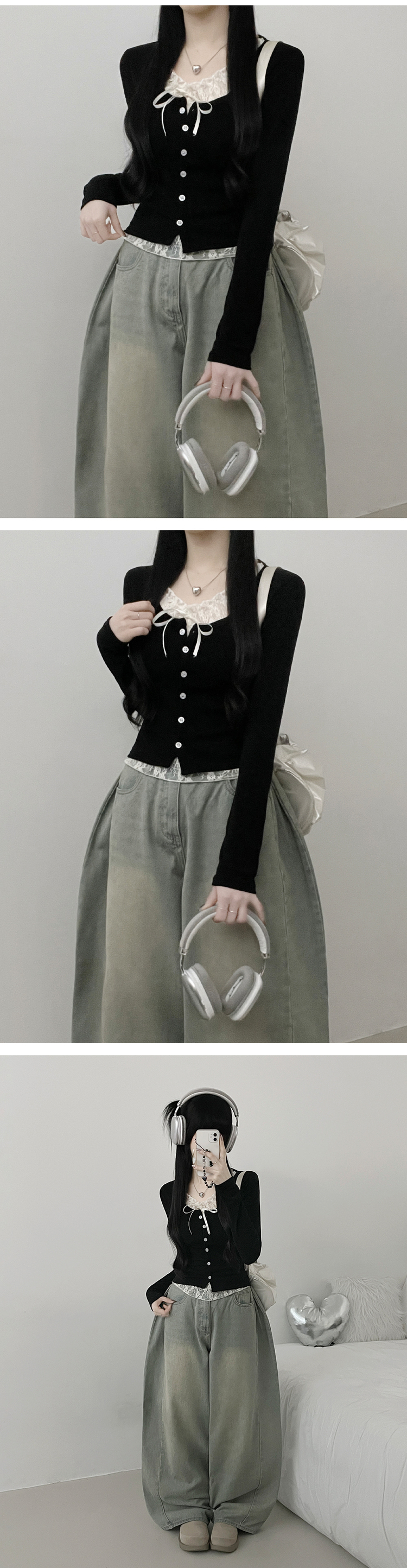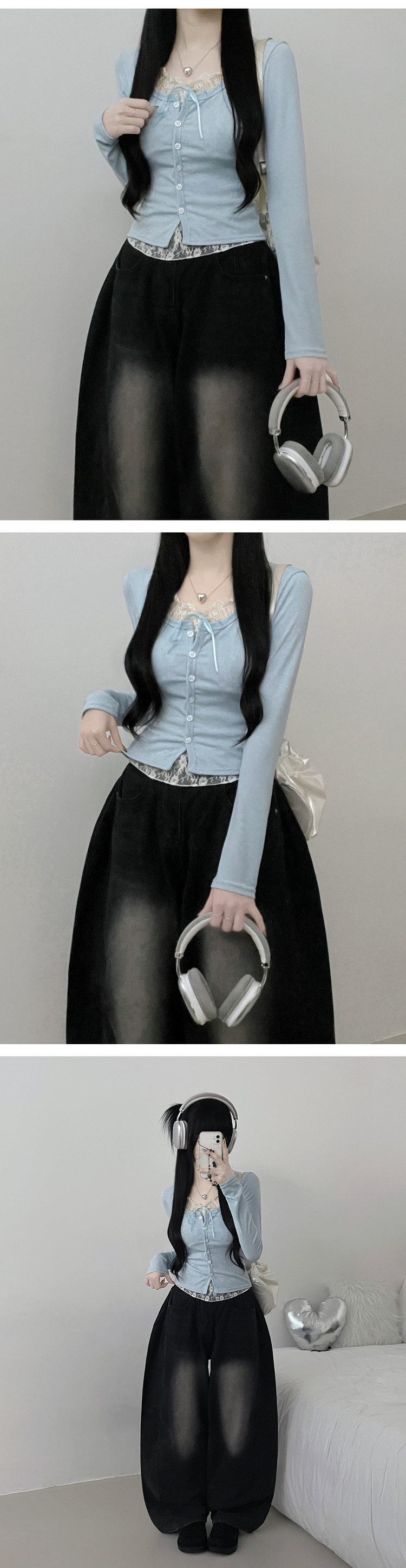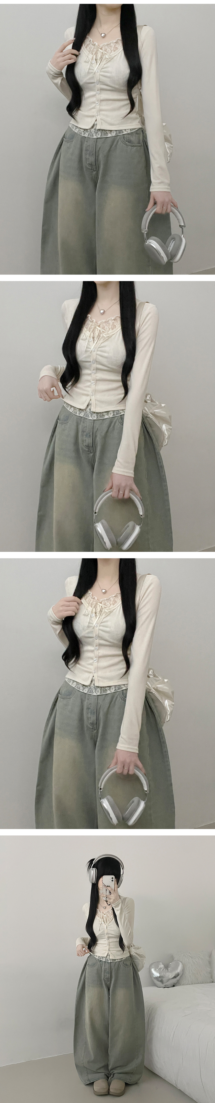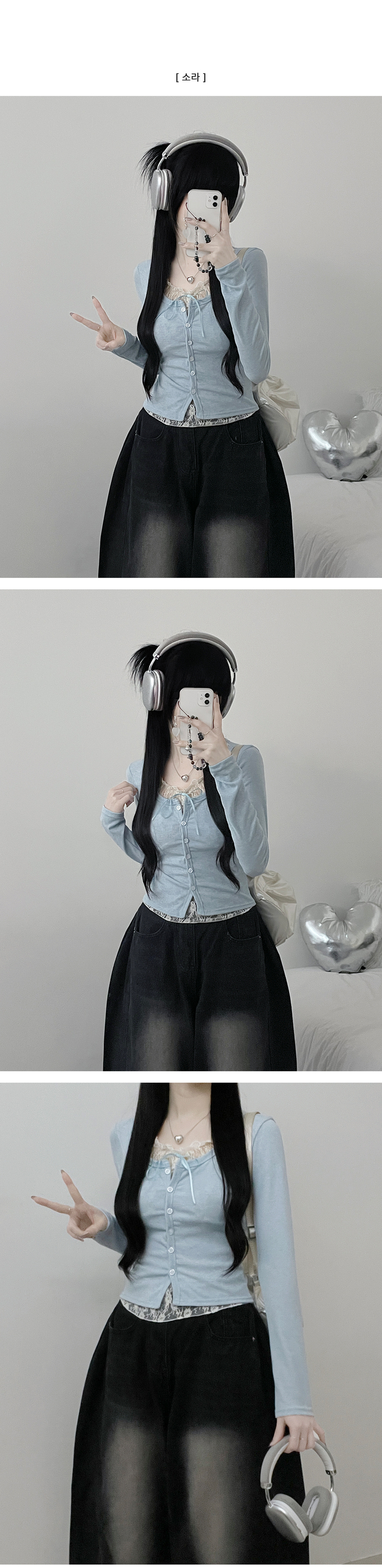 SGD31629 밀크티레이스리본레이어드긴팔가디건