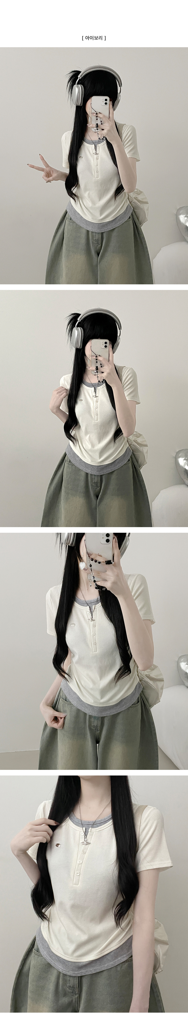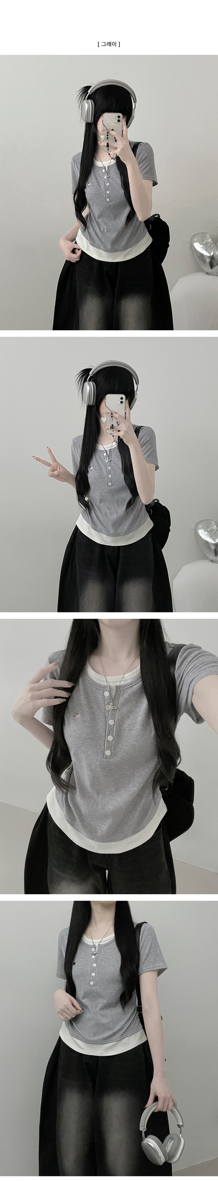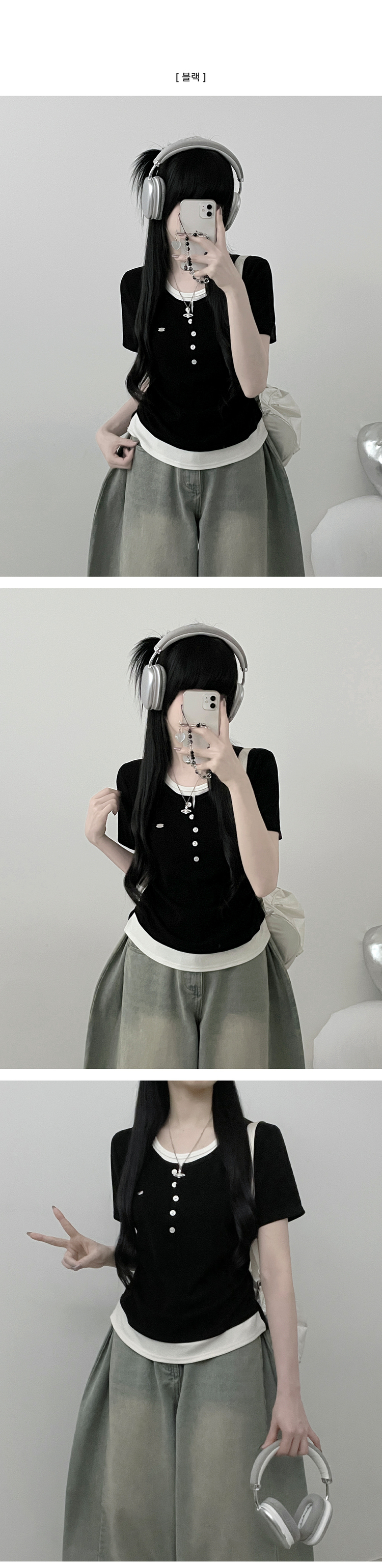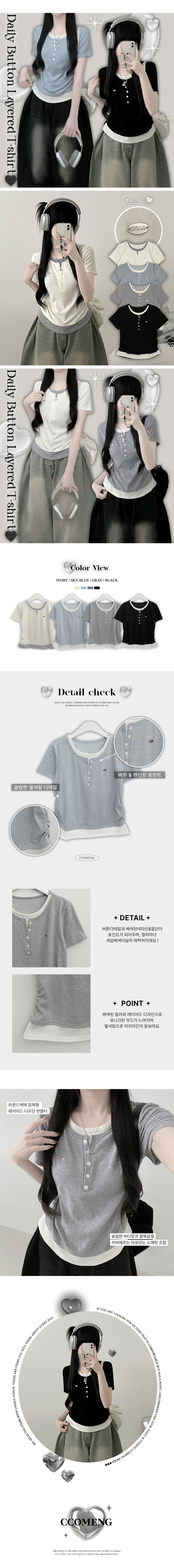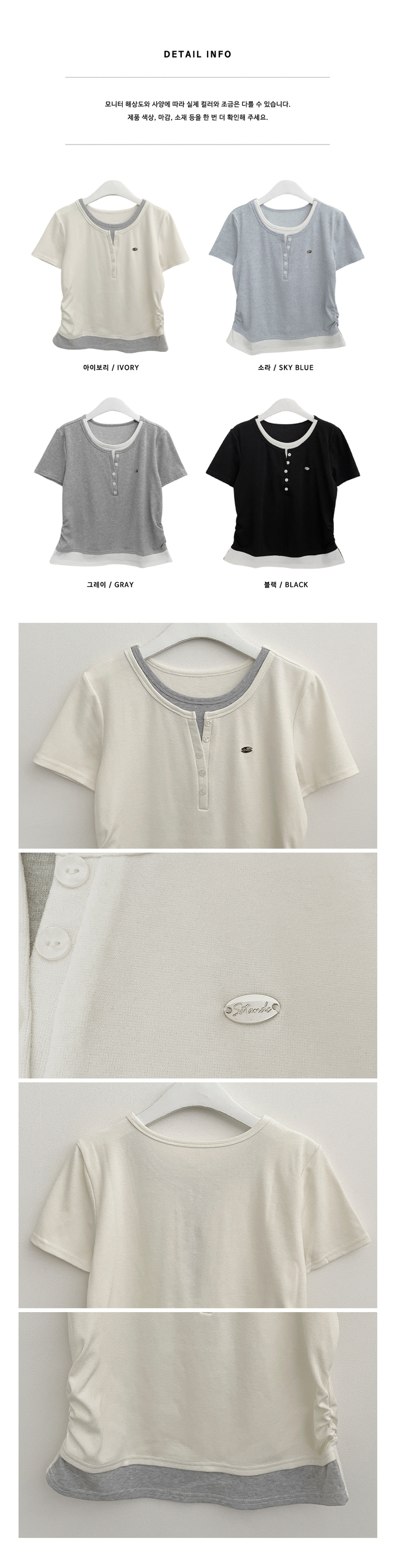 STS243874 반팔ver와펜버튼배색나시레이어드셔링반팔티