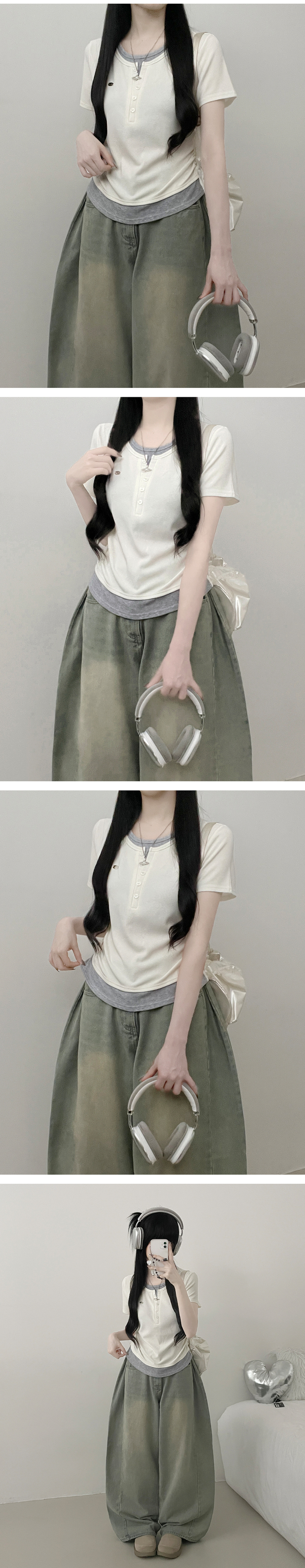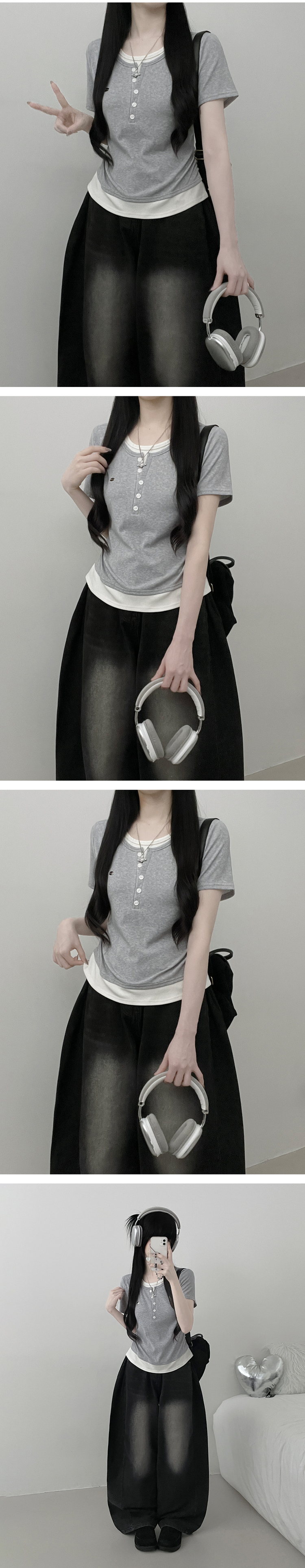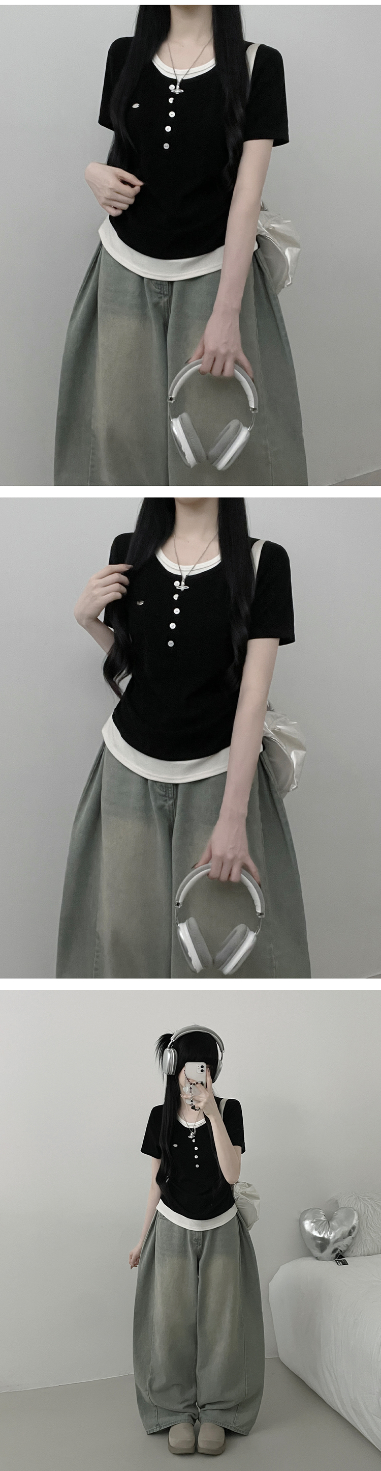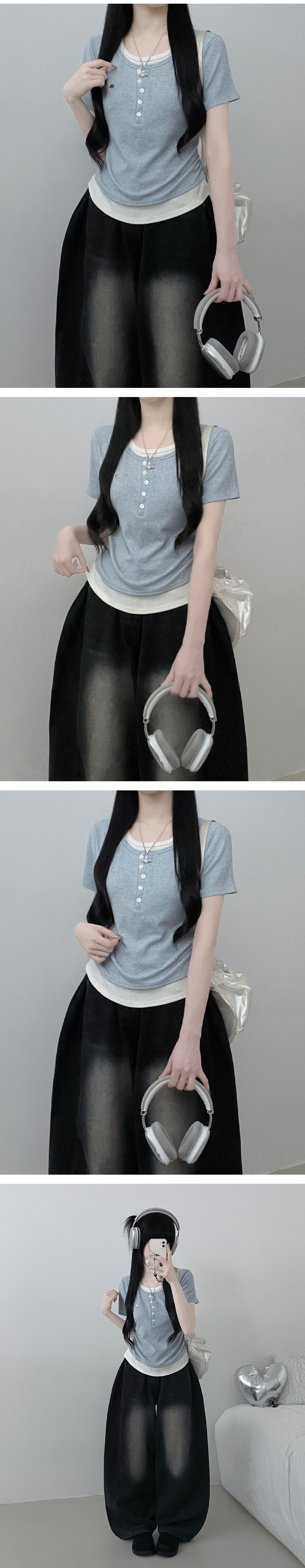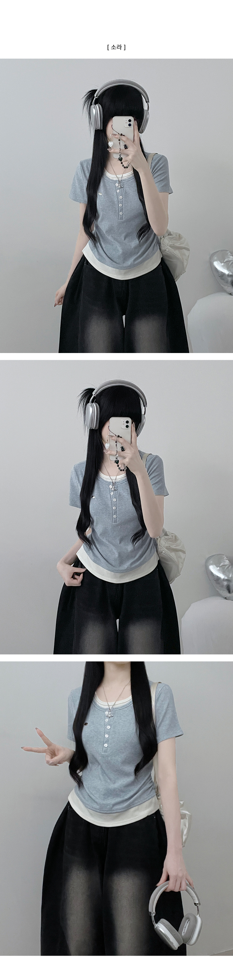 STS243874 반팔ver와펜버튼배색나시레이어드셔링반팔티