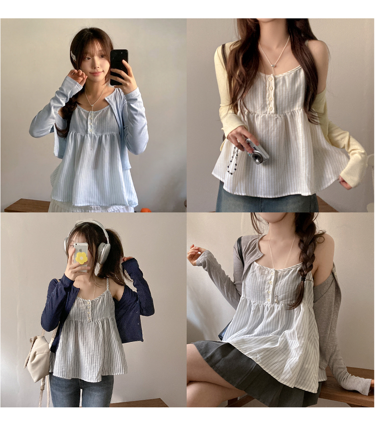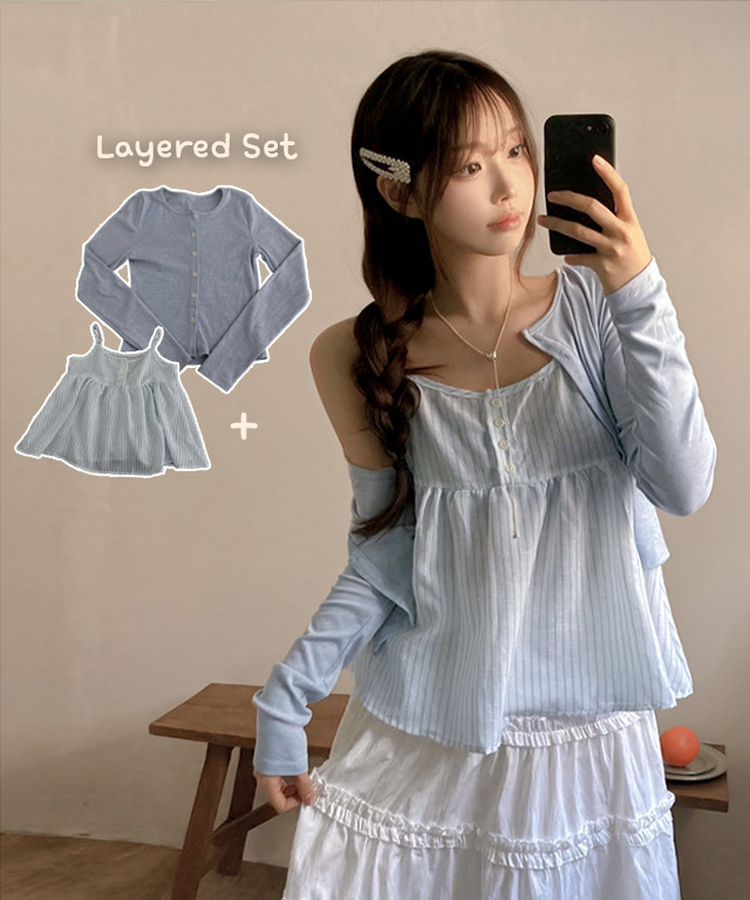 SGD31644 포코 소다 스트라이프 나시 가디건 투피스 세트