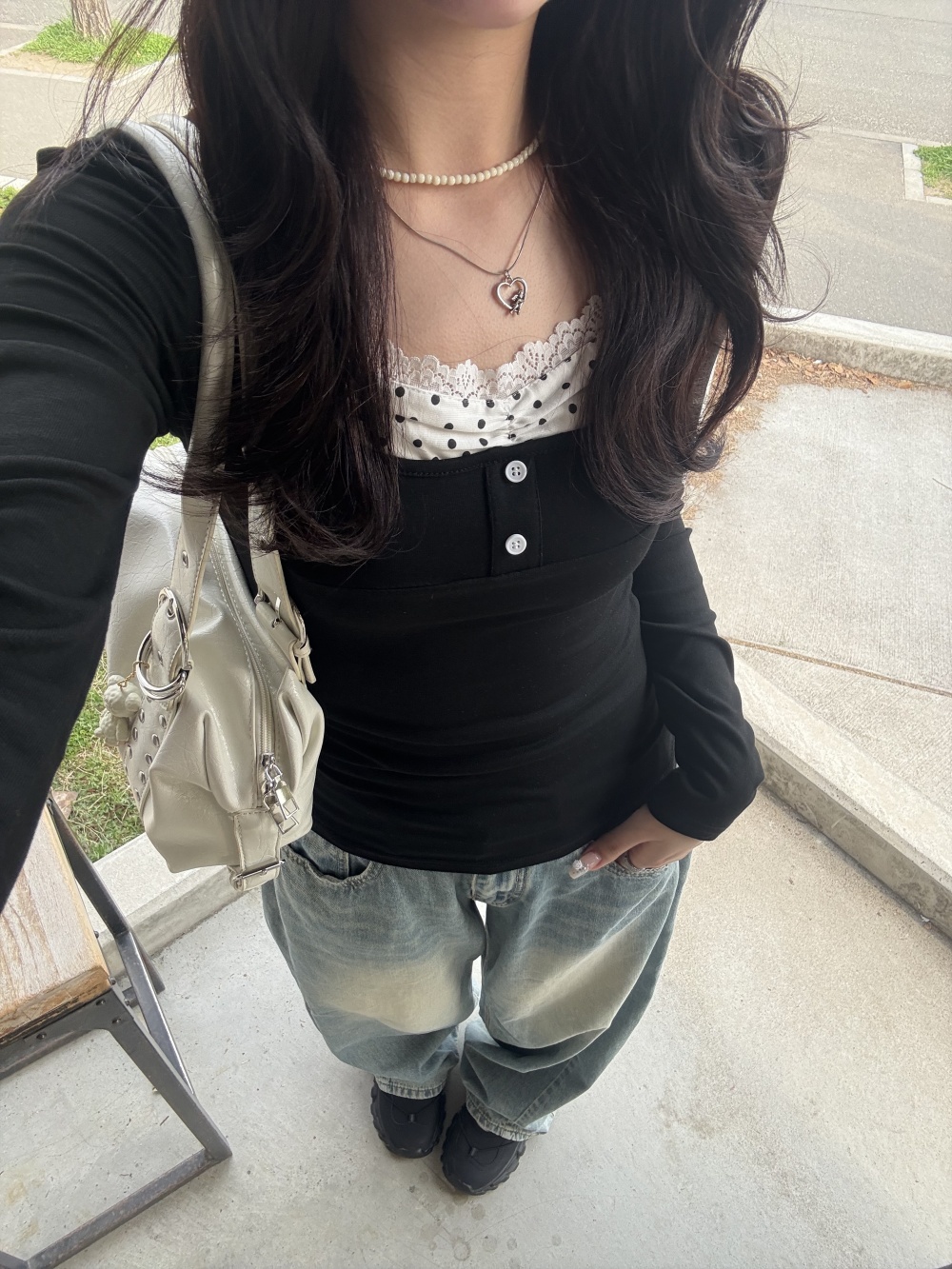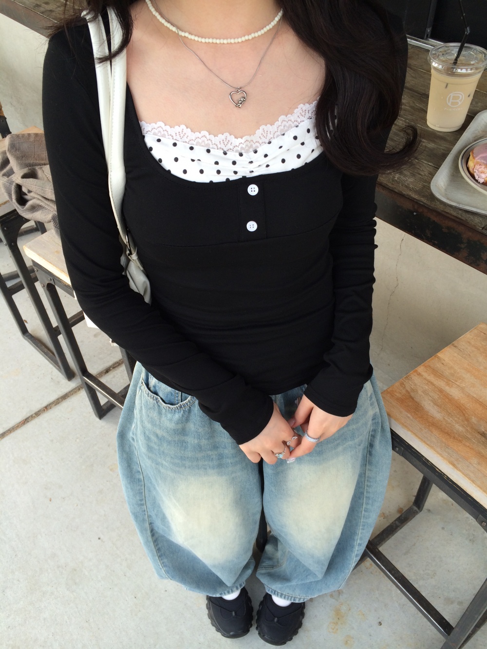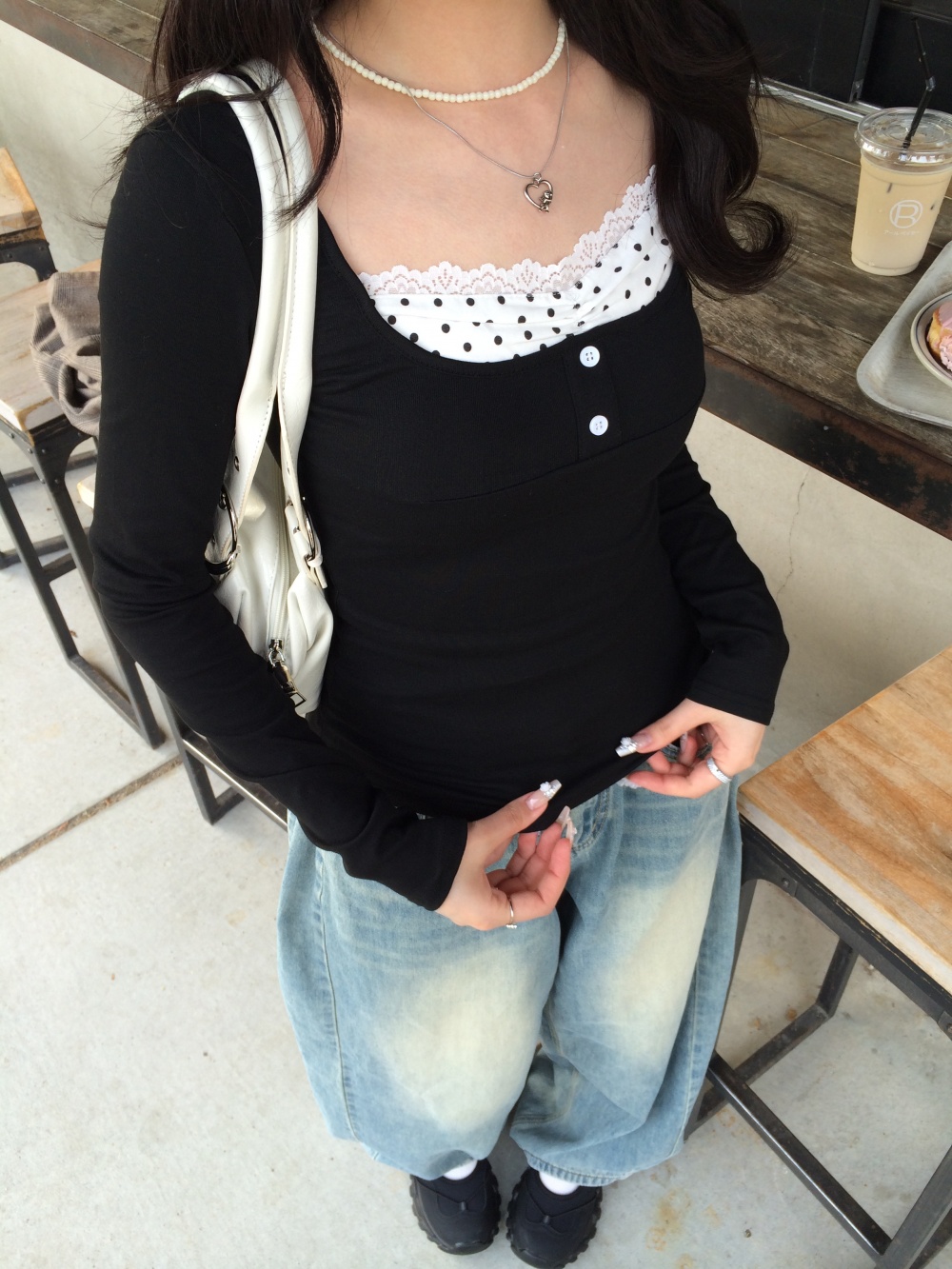 STS243894 도트 셔링 일체형 긴팔 티셔츠