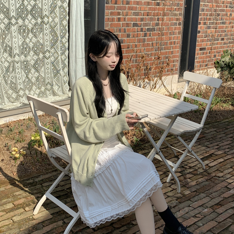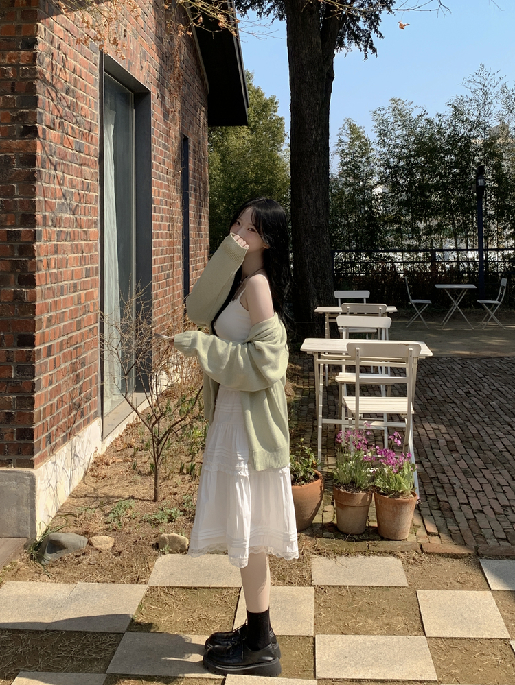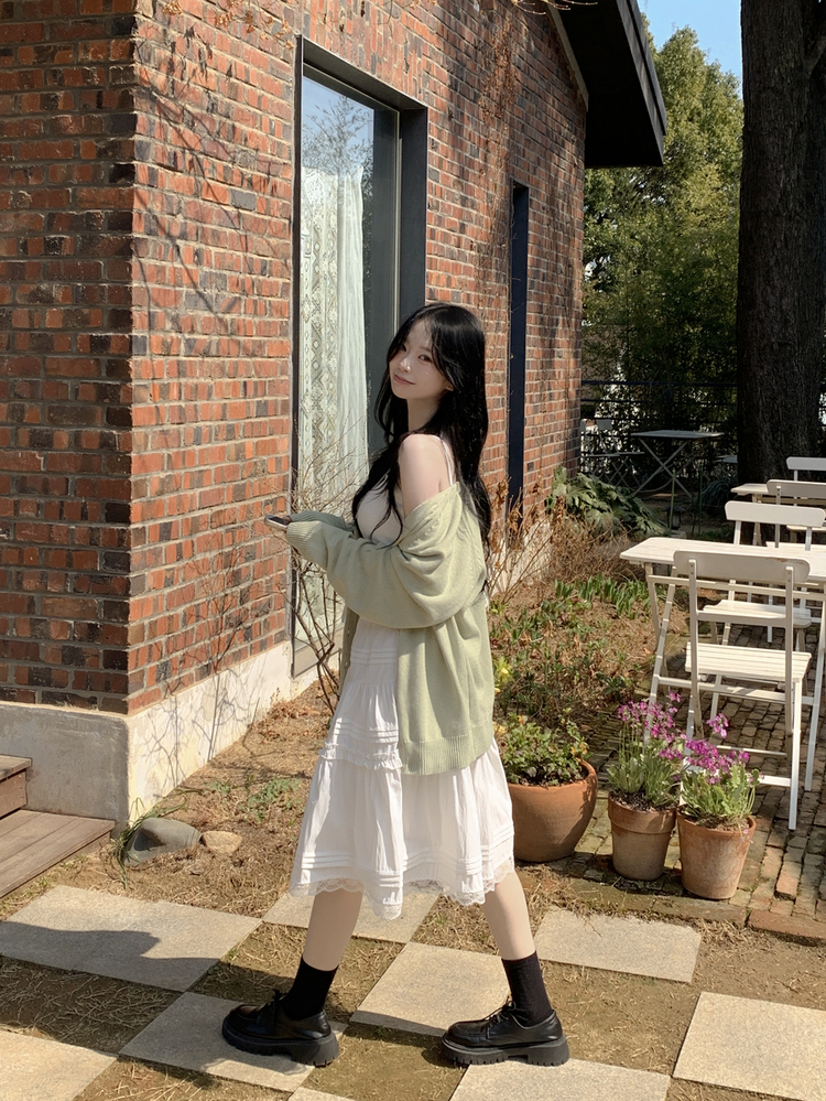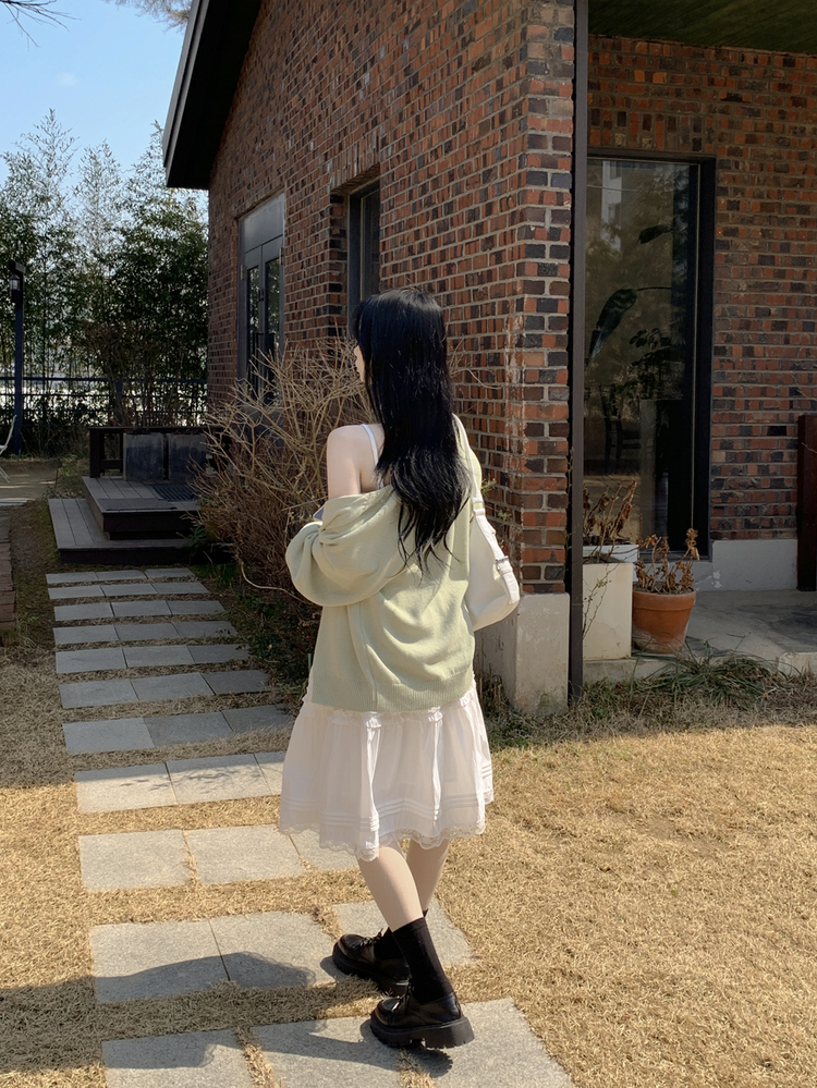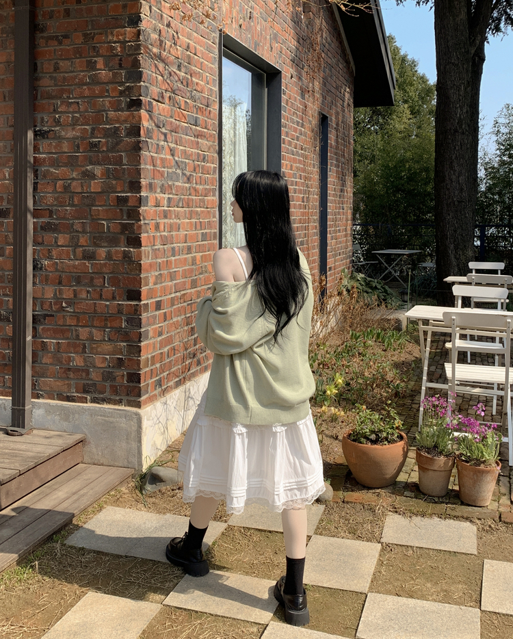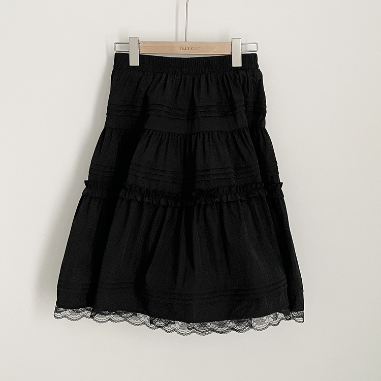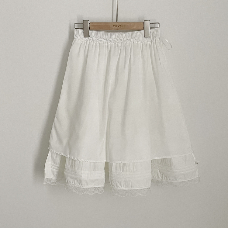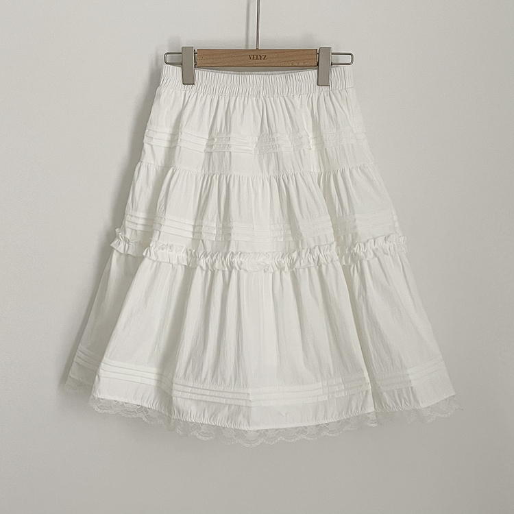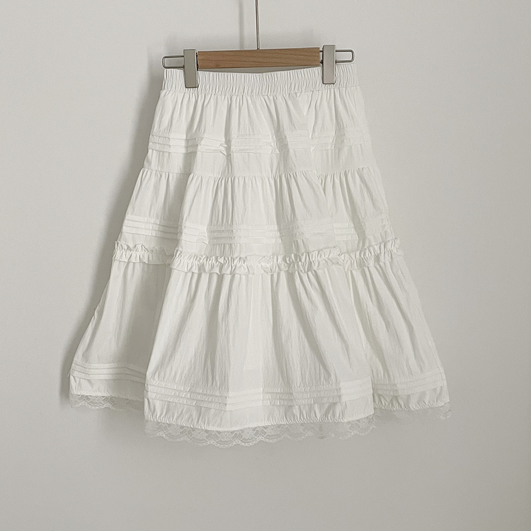 SSK26589 레이스 프릴 밴딩 플레어 A라인 캉캉 미디스커트 화이트 롱스커트 발레코어 벚꽃룩 봄코디