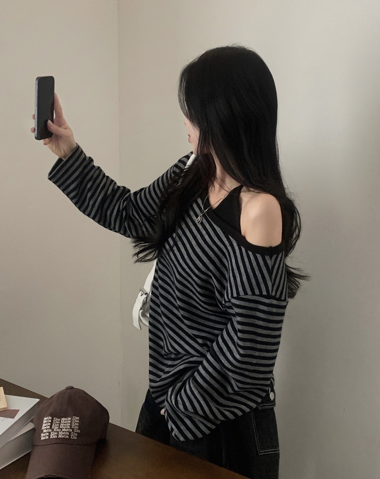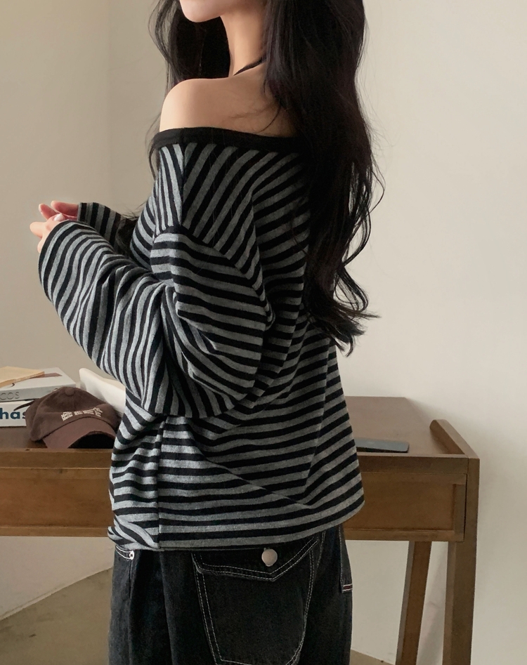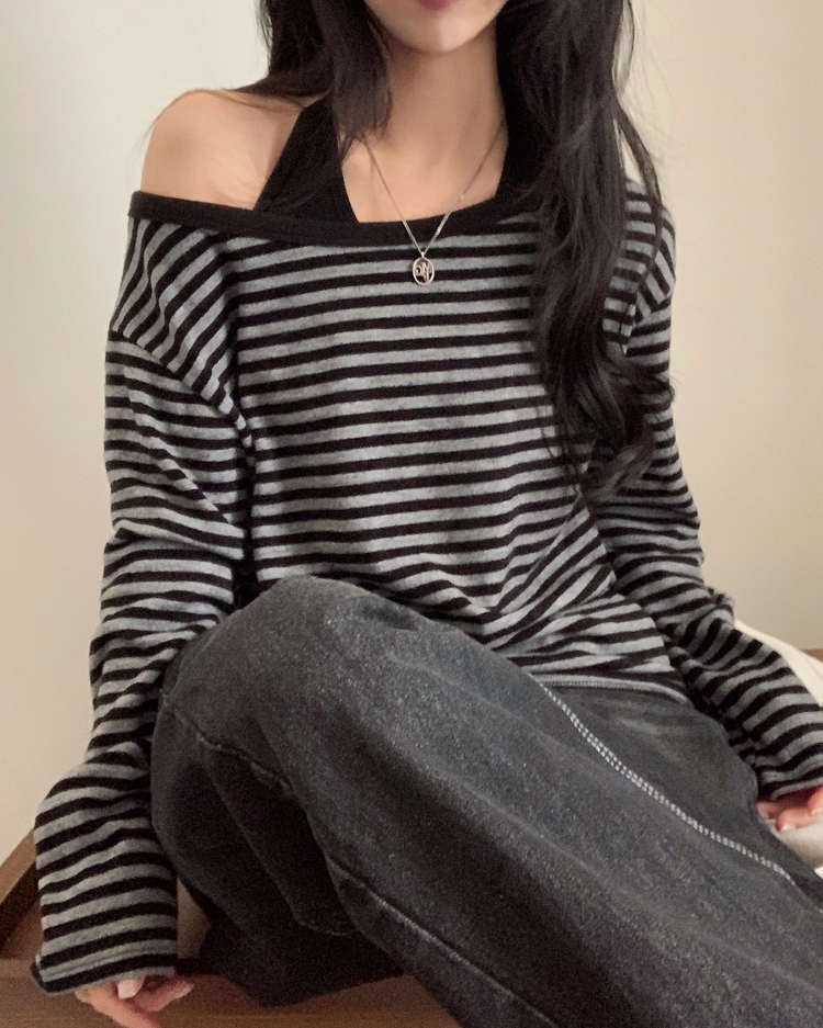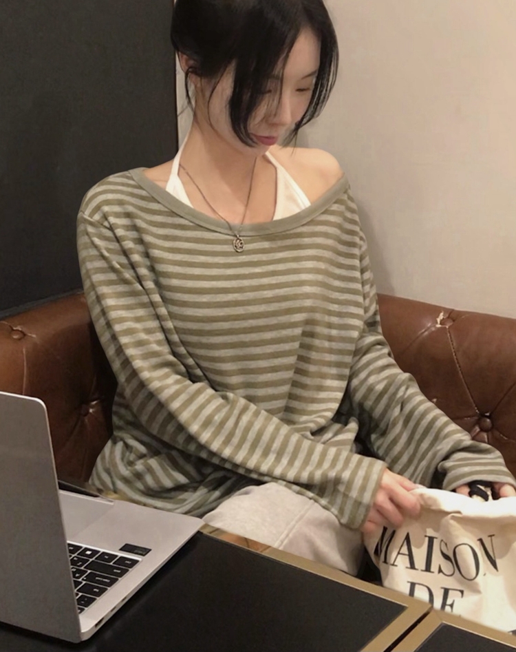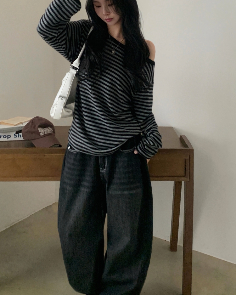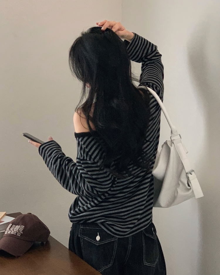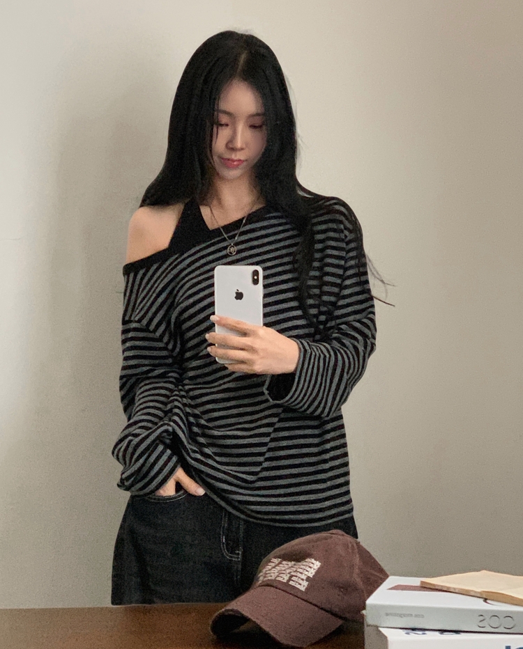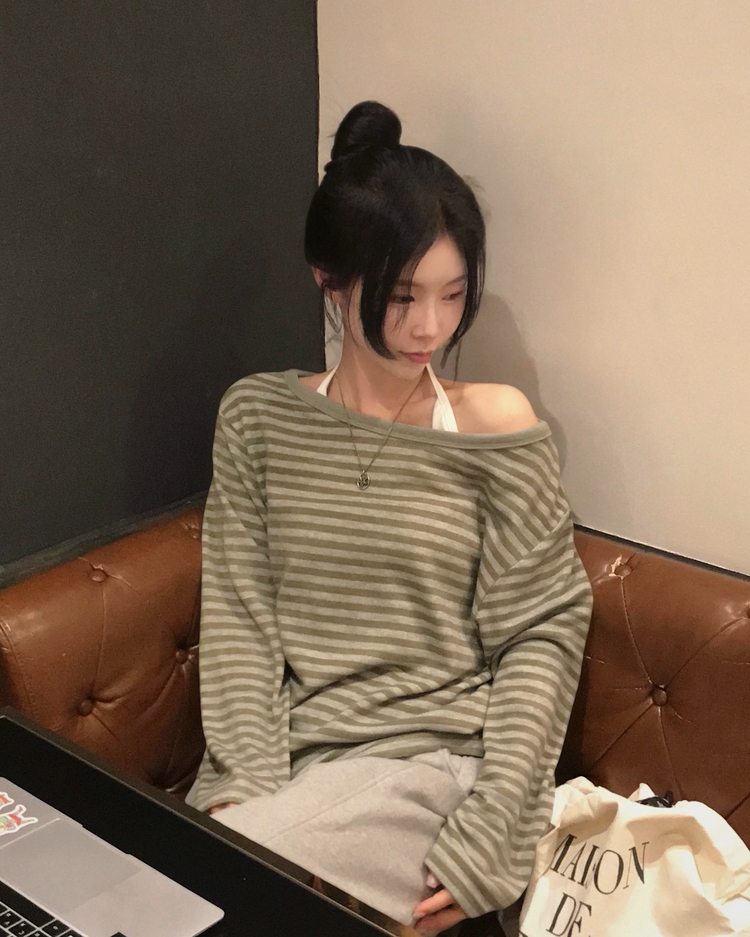 STS244371 스트라이프 원오프 긴팔티셔츠 맨투맨 4color