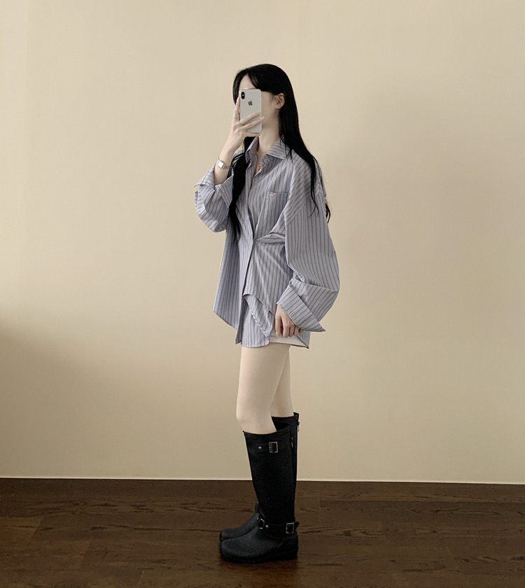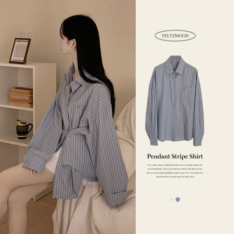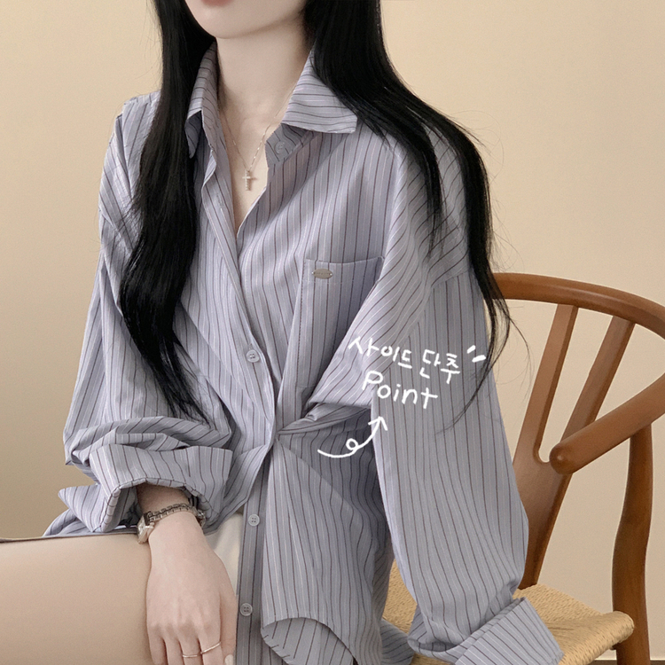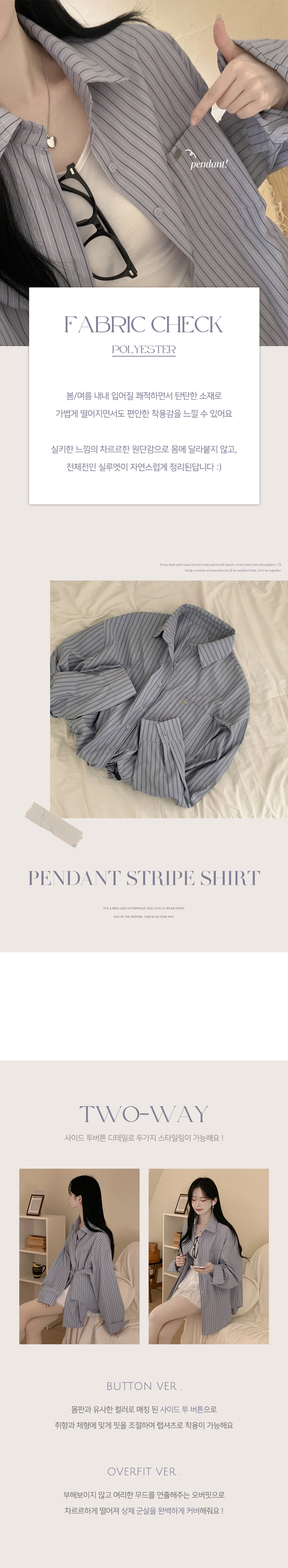 SBS31363 펜던트 사이드버튼 스트라이프 왕오버핏 셔츠 빅사이즈 봄신상