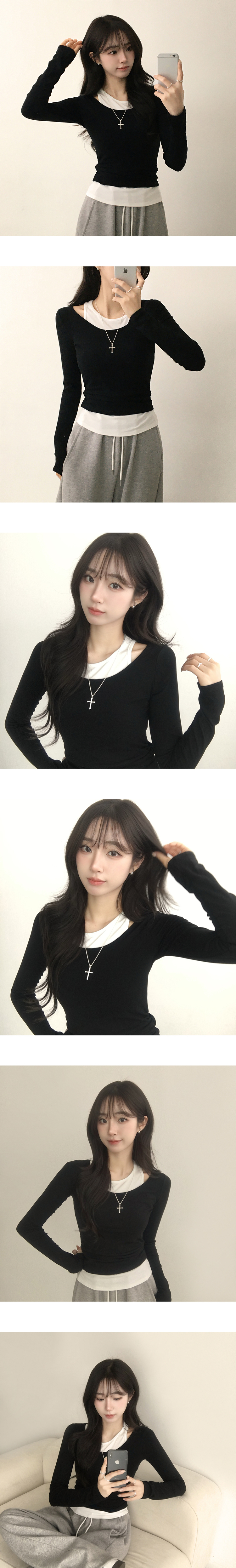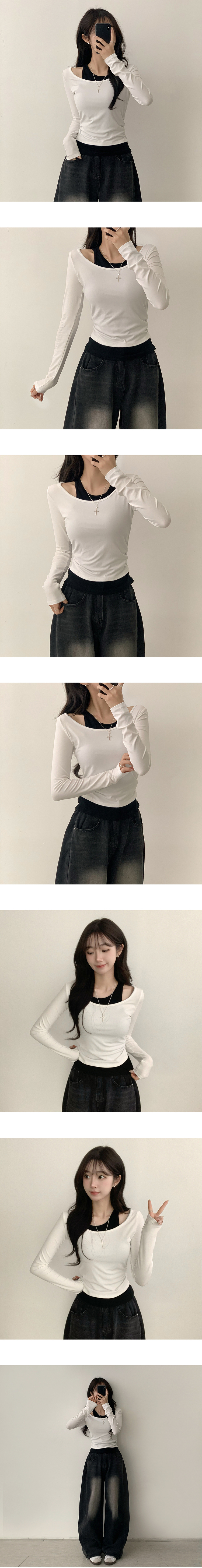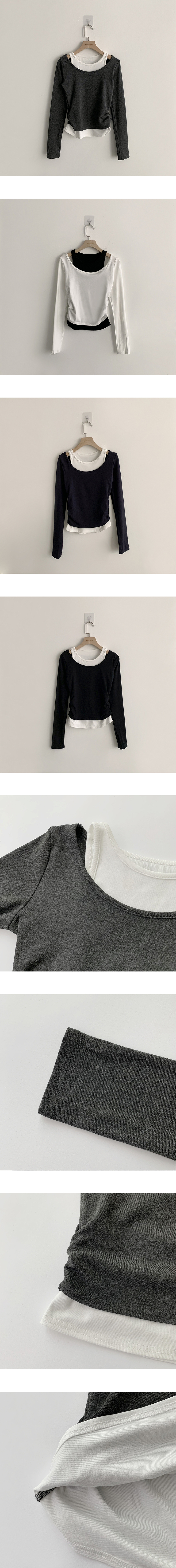 STS244413 마른핏 보장 슈슈 라운드 나시 레이어드 허리 셔링 긴팔 티셔츠 베이직 이중 허리잘록 슬림핏 봄 긴팔티 4color