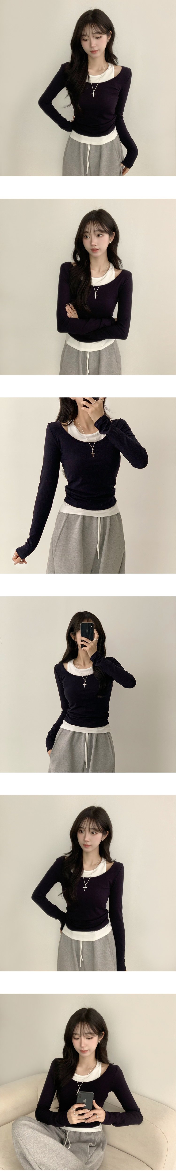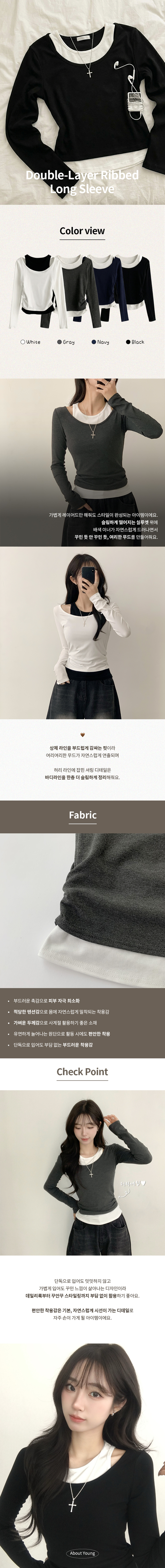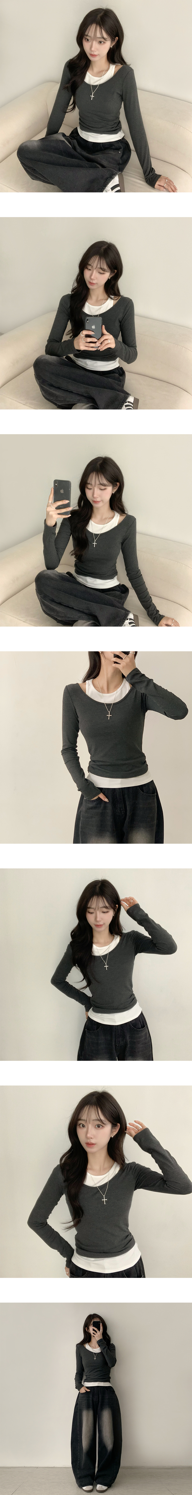 STS244413 마른핏 보장 슈슈 라운드 나시 레이어드 허리 셔링 긴팔 티셔츠 베이직 이중 허리잘록 슬림핏 봄 긴팔티 4color