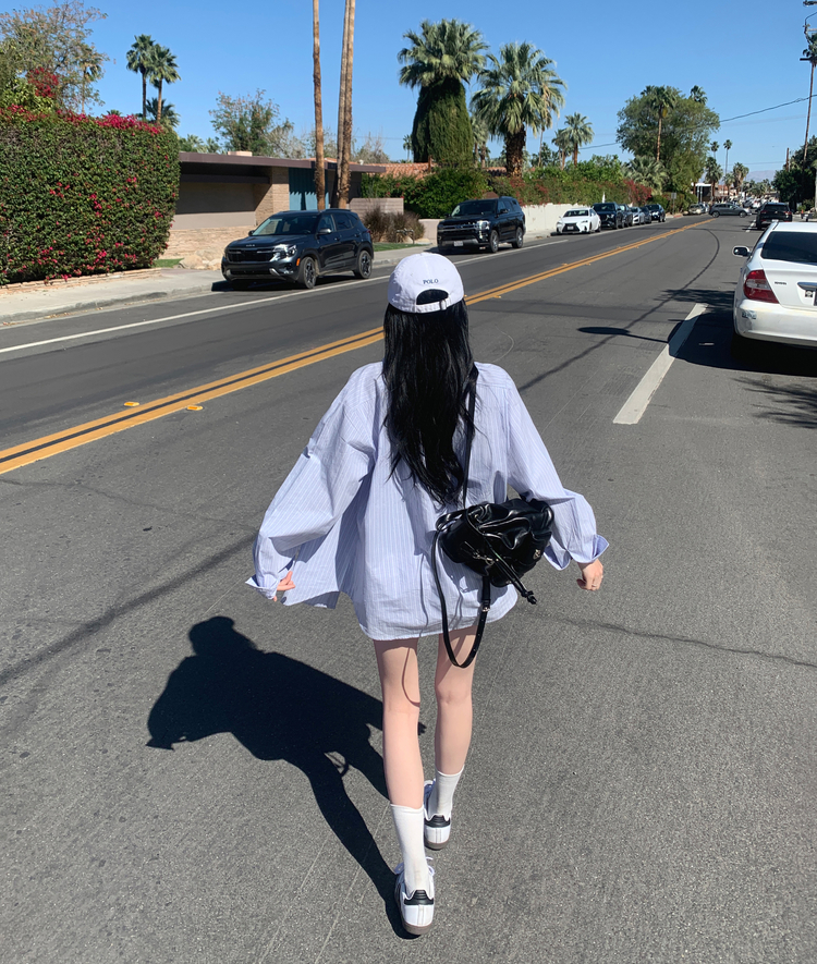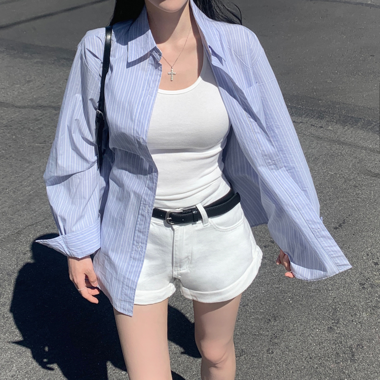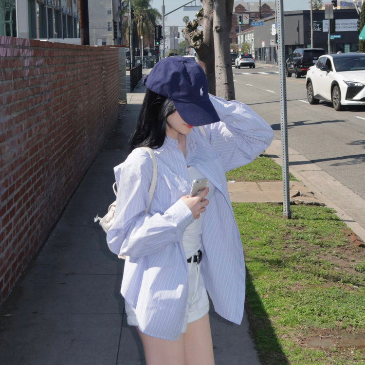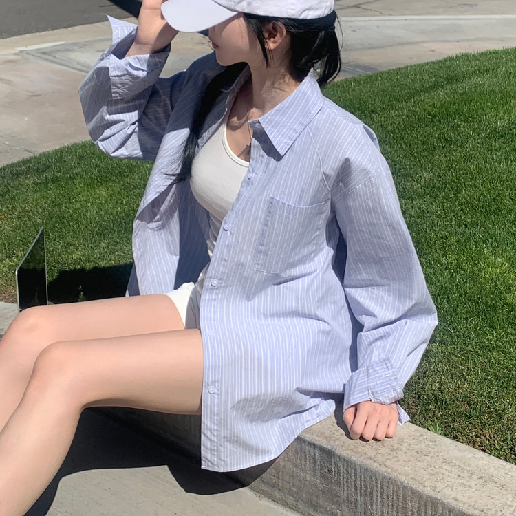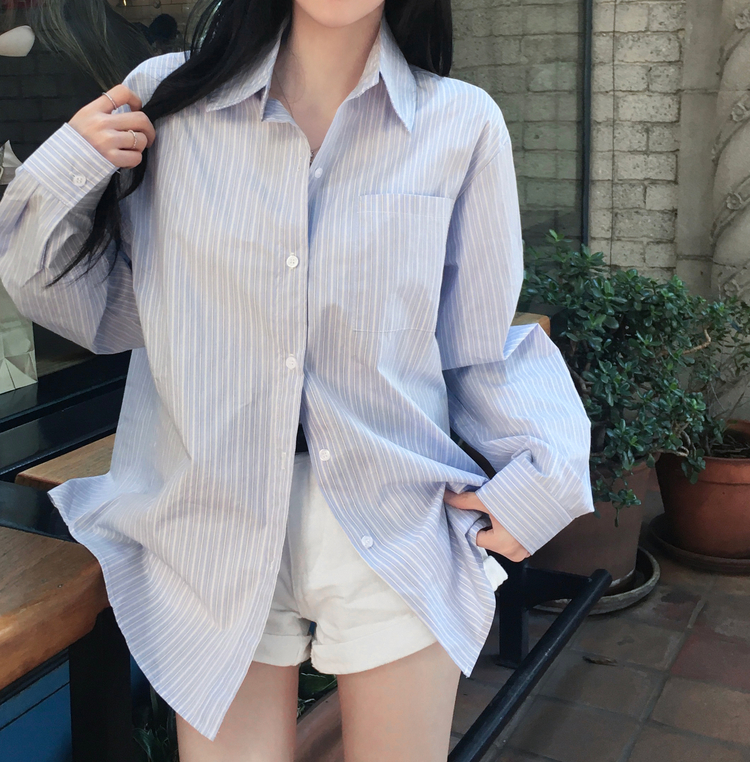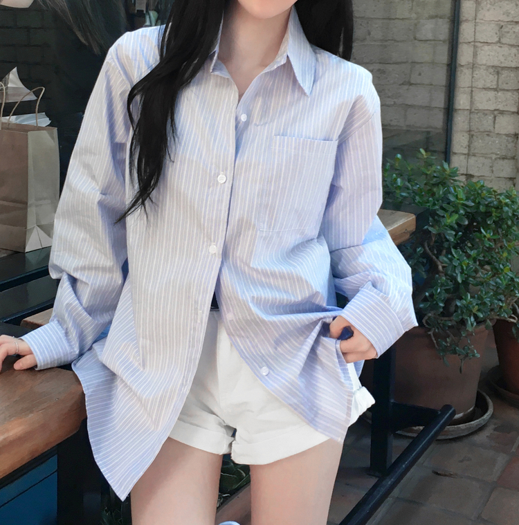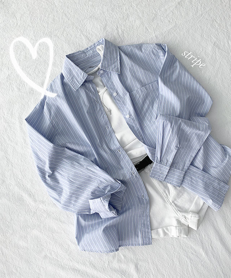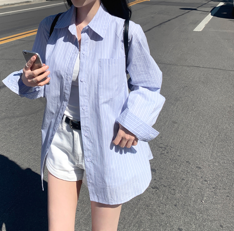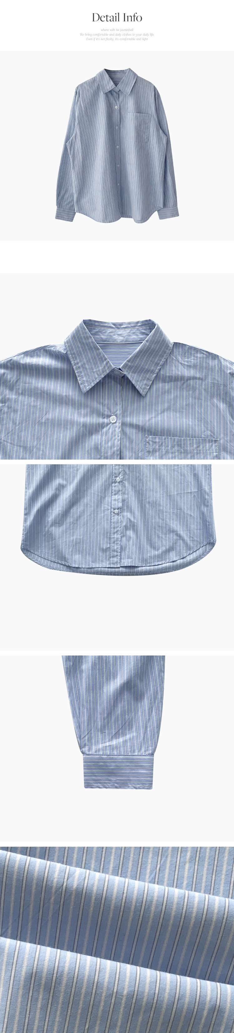 SBS31434 레크 스트라이프 셔츠 남방 포켓 오버핏 단가라 데일리룩 캐주얼룩 개강룩 출근룩 레이어드 사계절템 봄신상봄코디