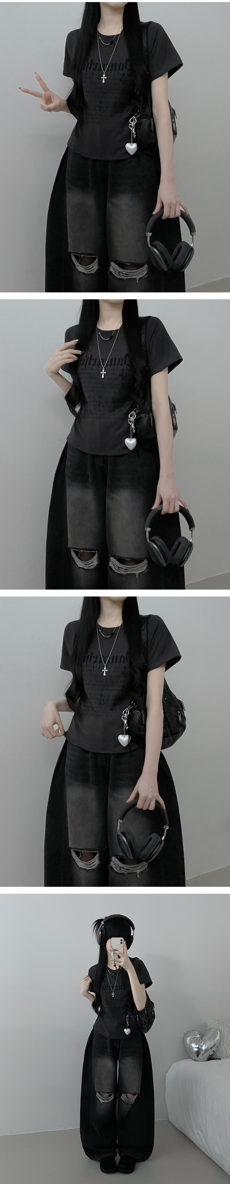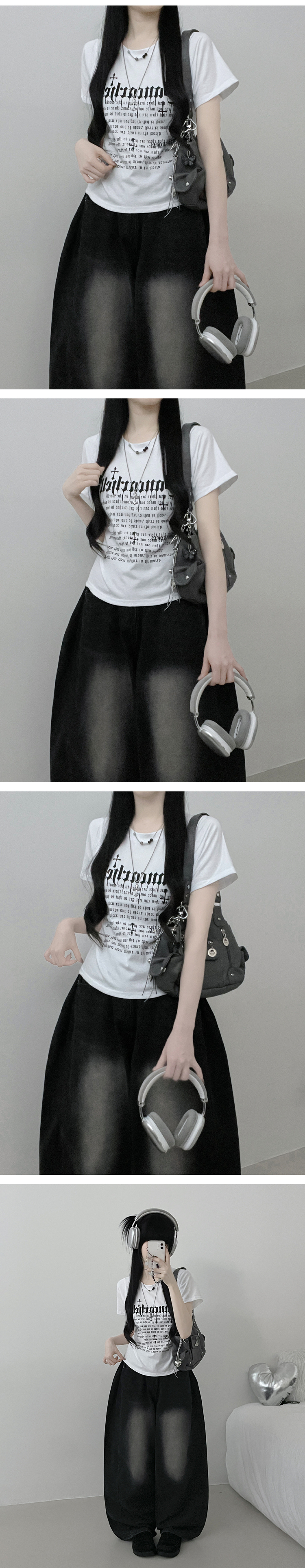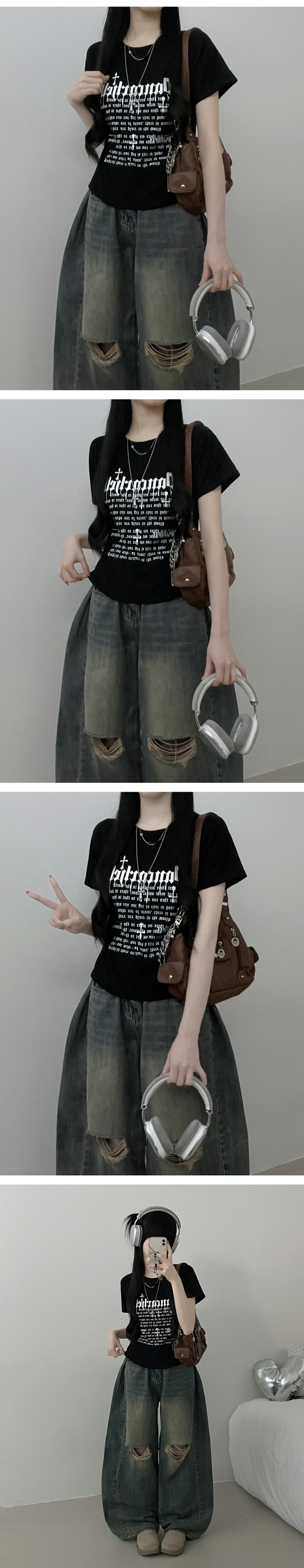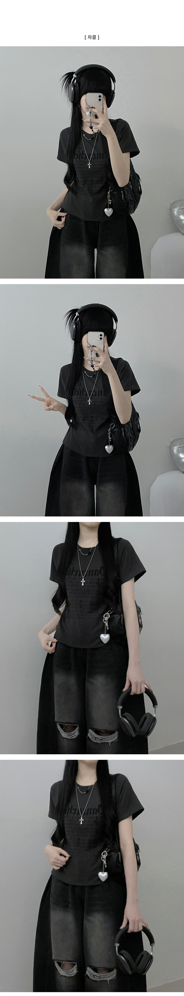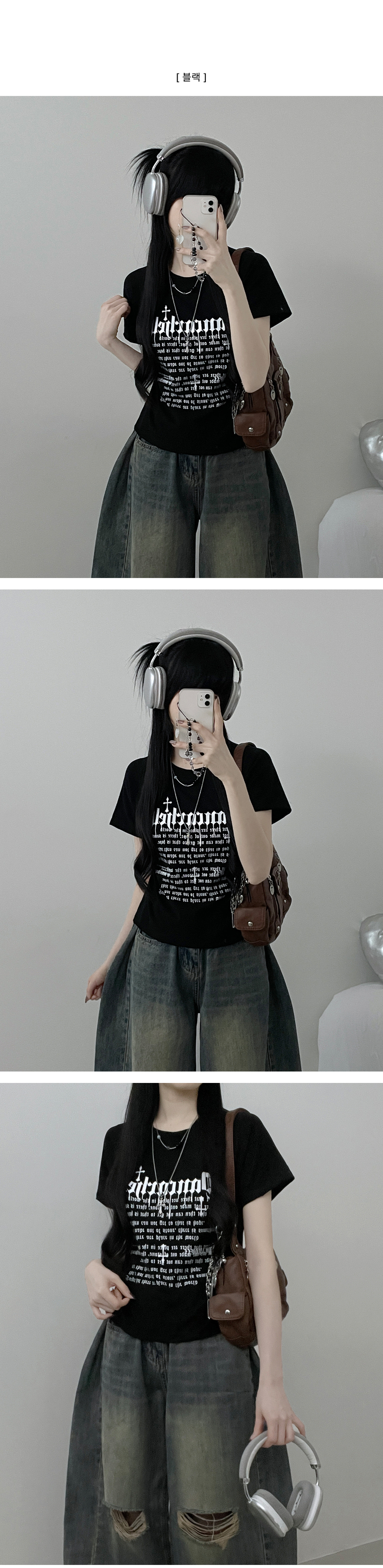 STS244540 반팔ver두벌레터링빈티지세미크롭반팔티셔츠