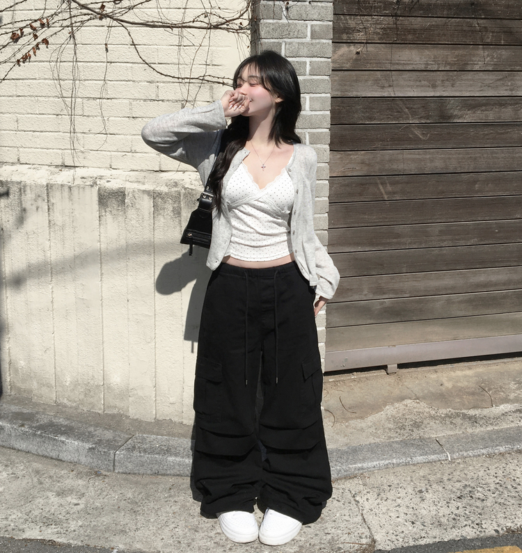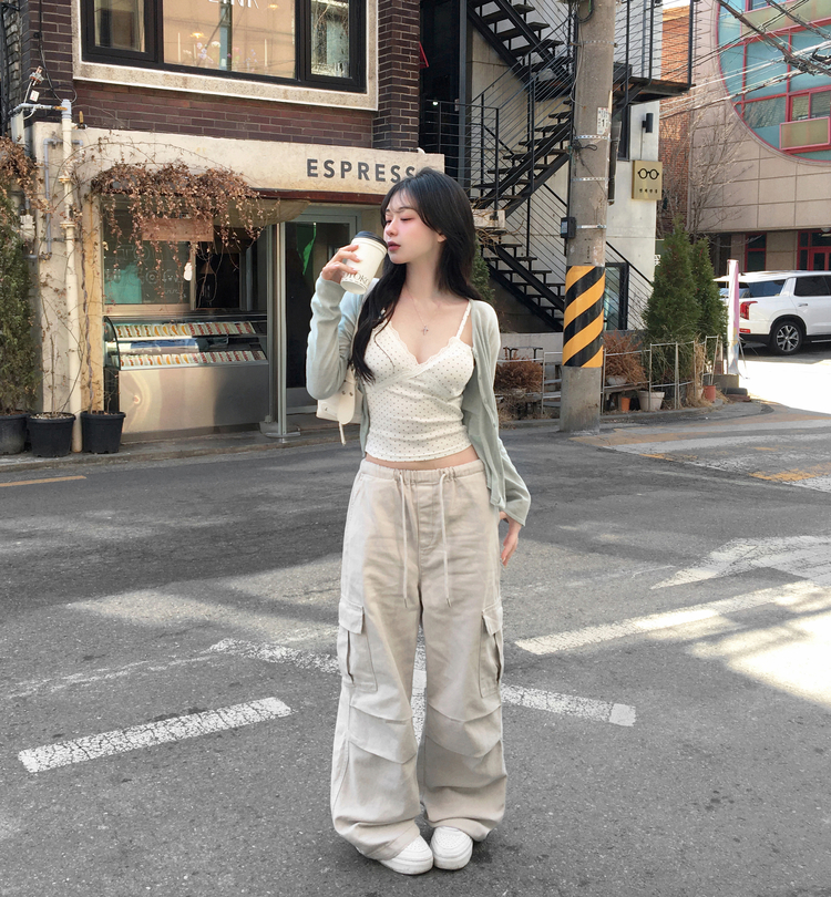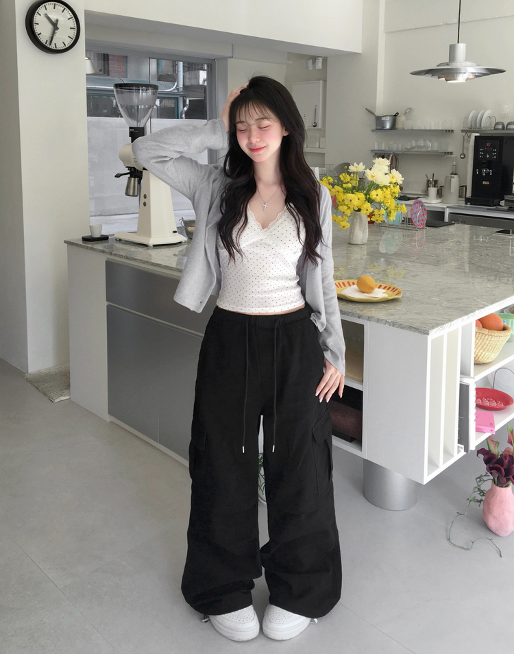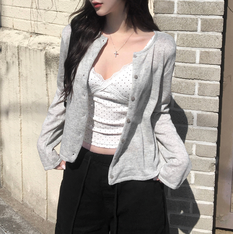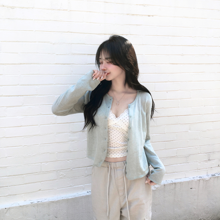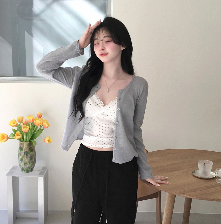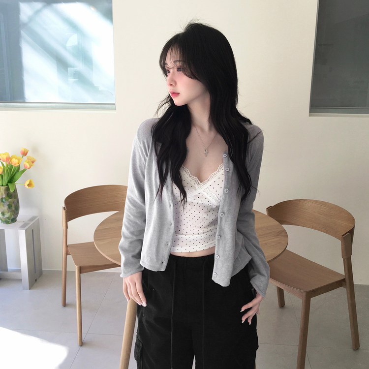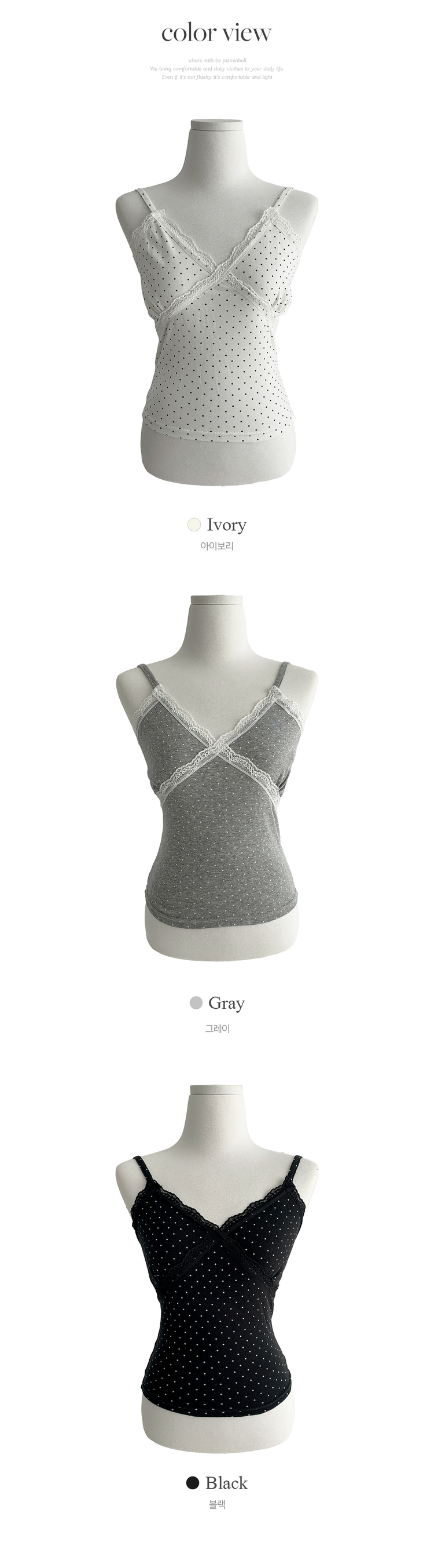 STS244571 루픽 도트 나시 레이스 브이넥 크롭 민소매 끈나시 슬리브리스 레이어드템 러블리룩 데이트룩 데일리룩 여친룩 봄 신상봄 나시사계절템