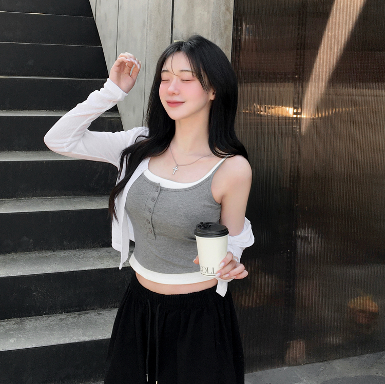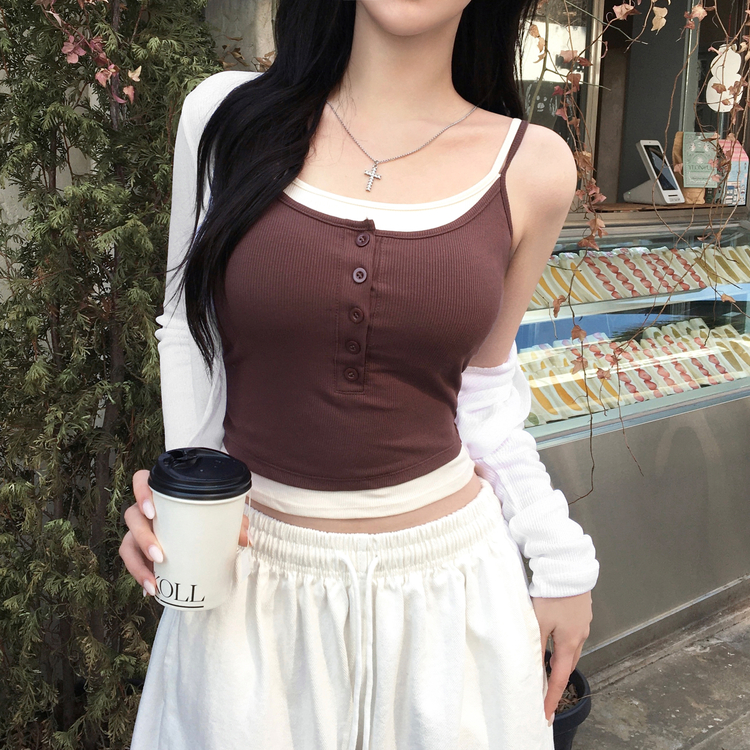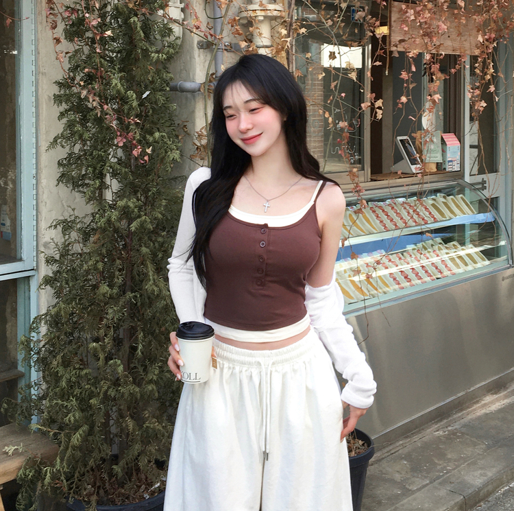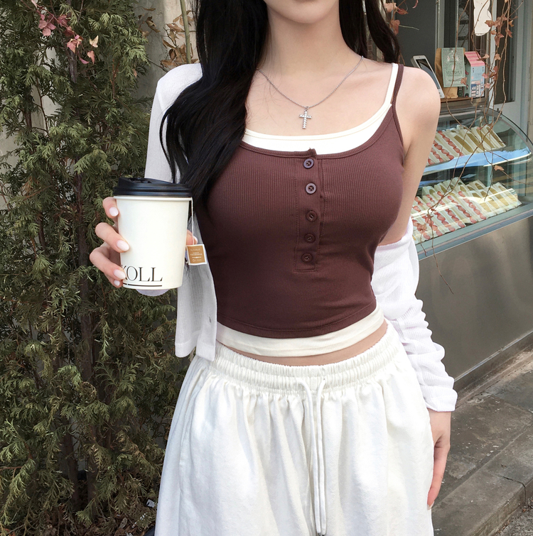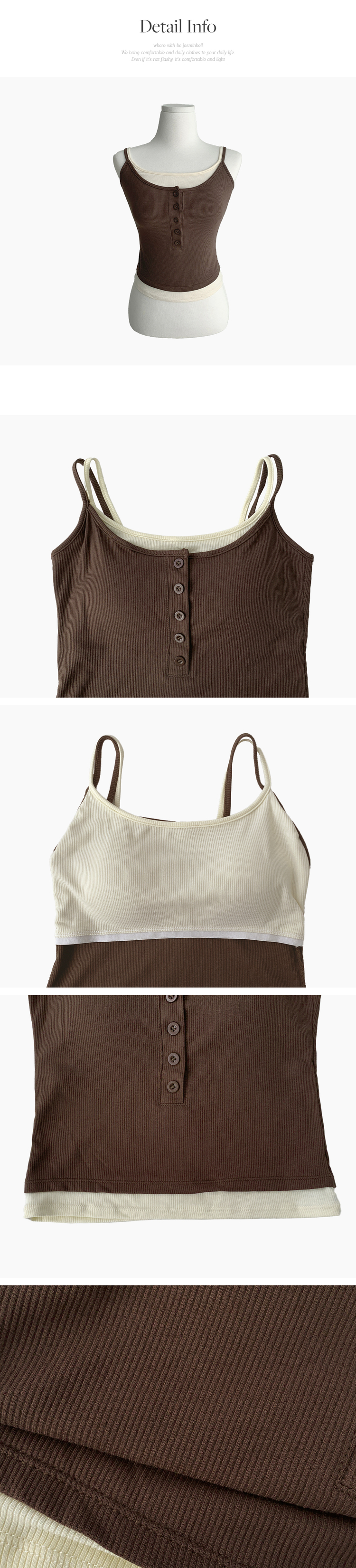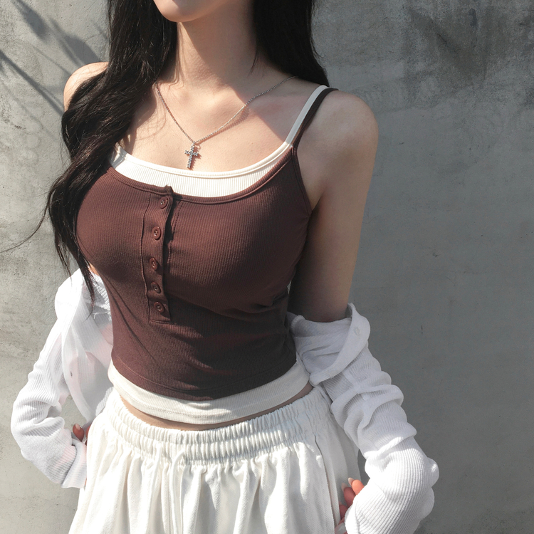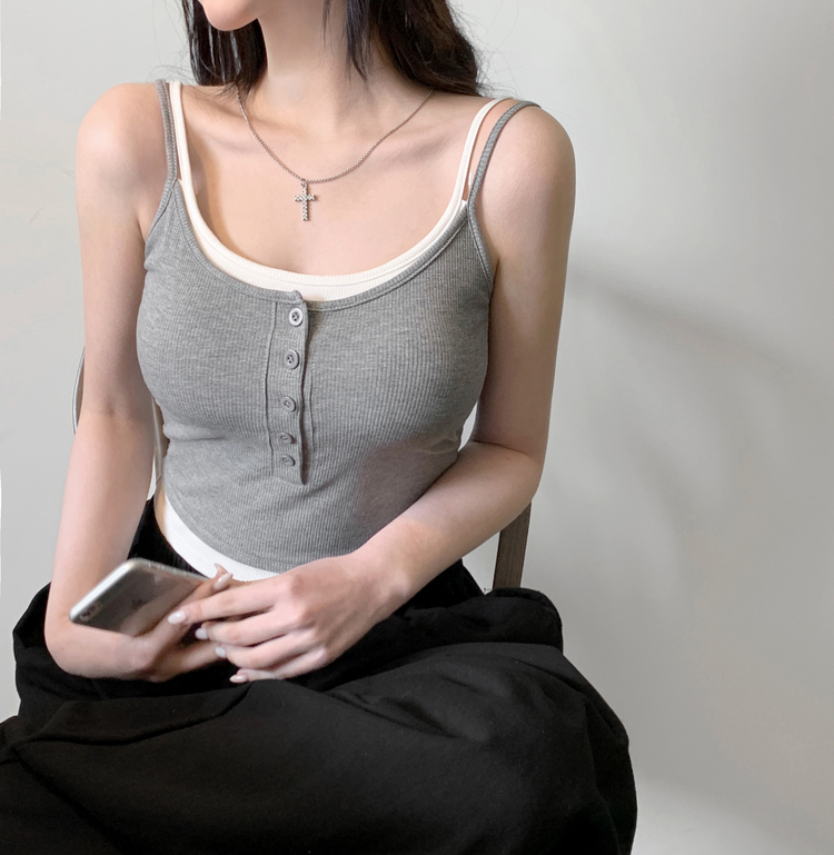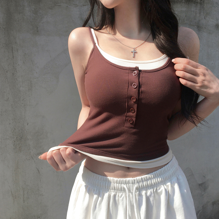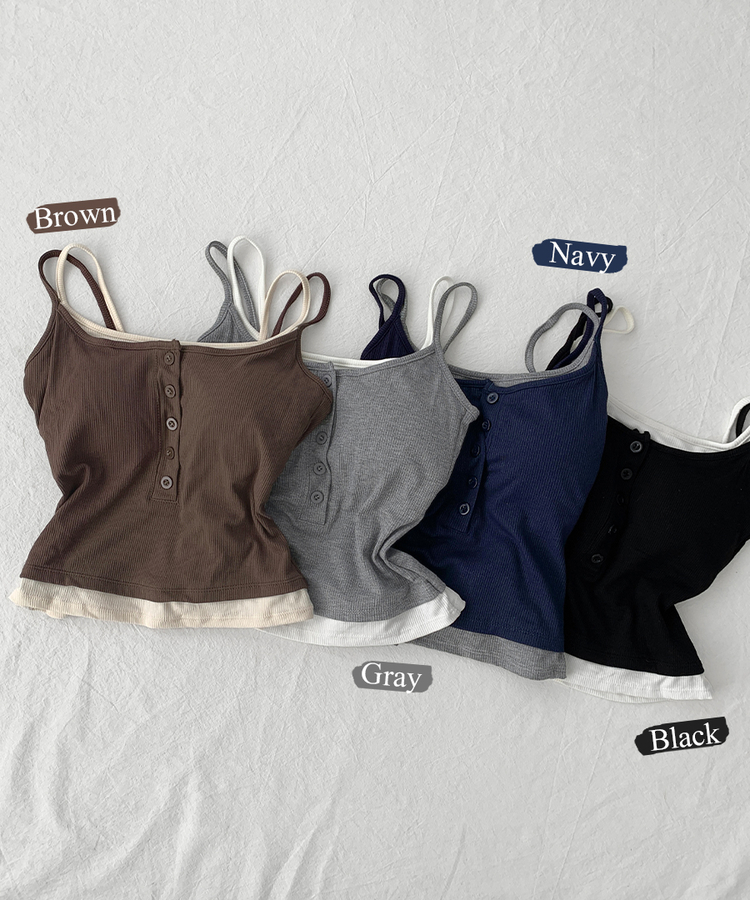 STS244554 케이즈 단추 일체형 캡나시 민소매 슬리브리스 끈나시 골지 슬림핏 허리잘록핏 레이어드 캐주얼 데일리 봄신상봄나시