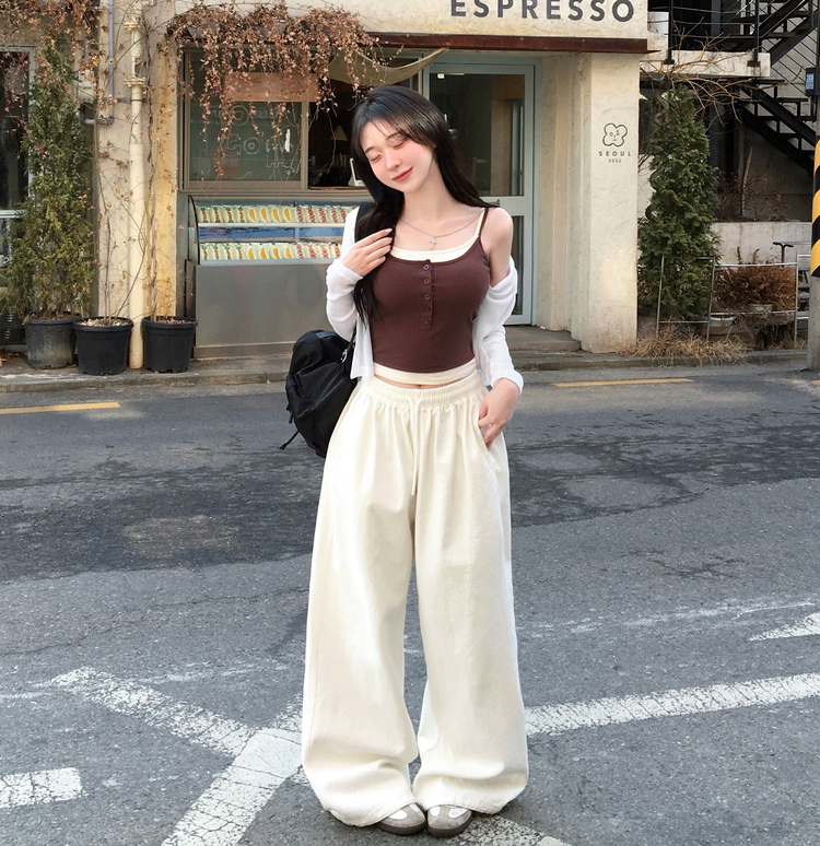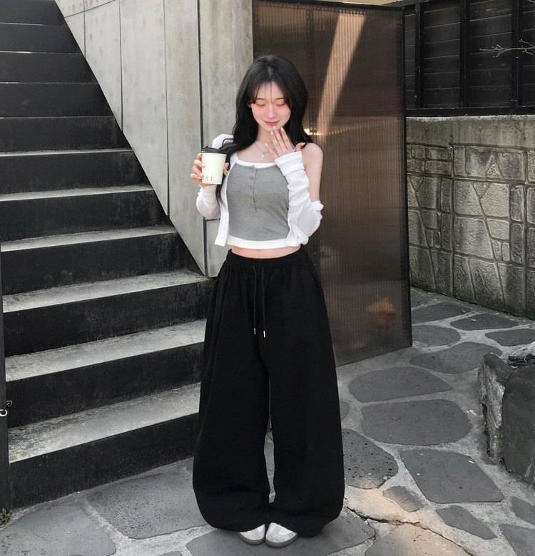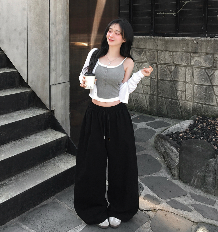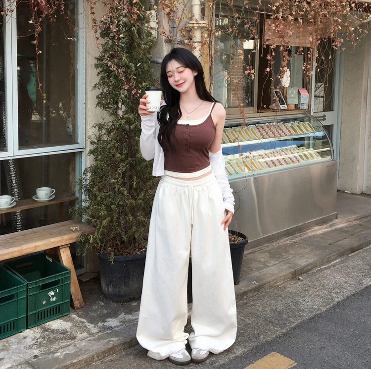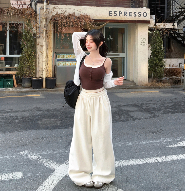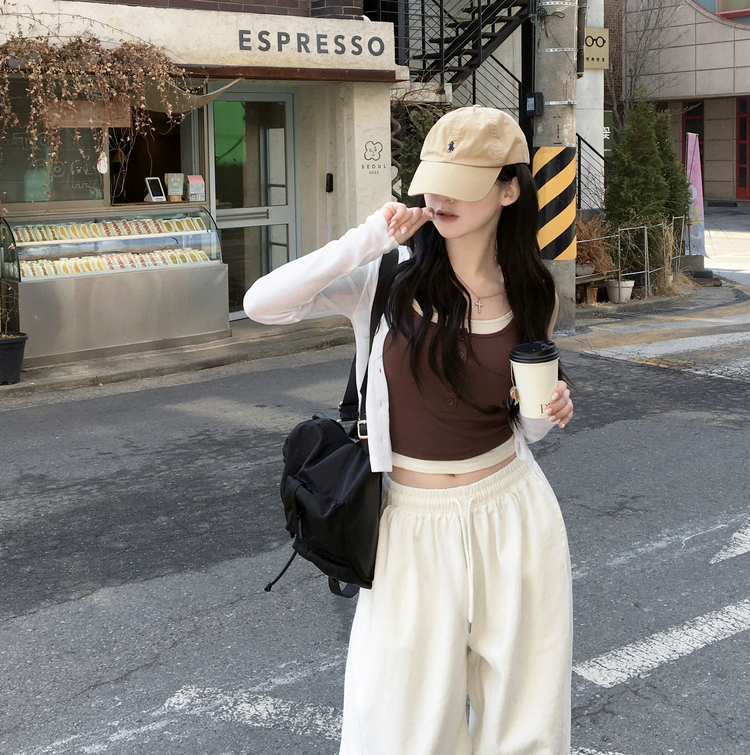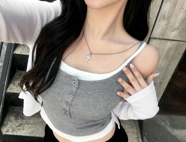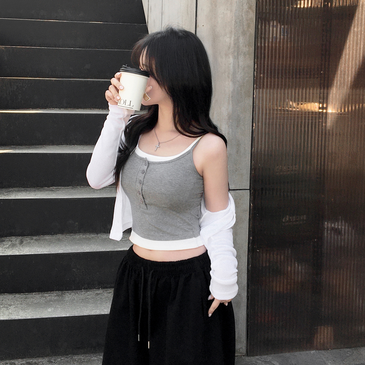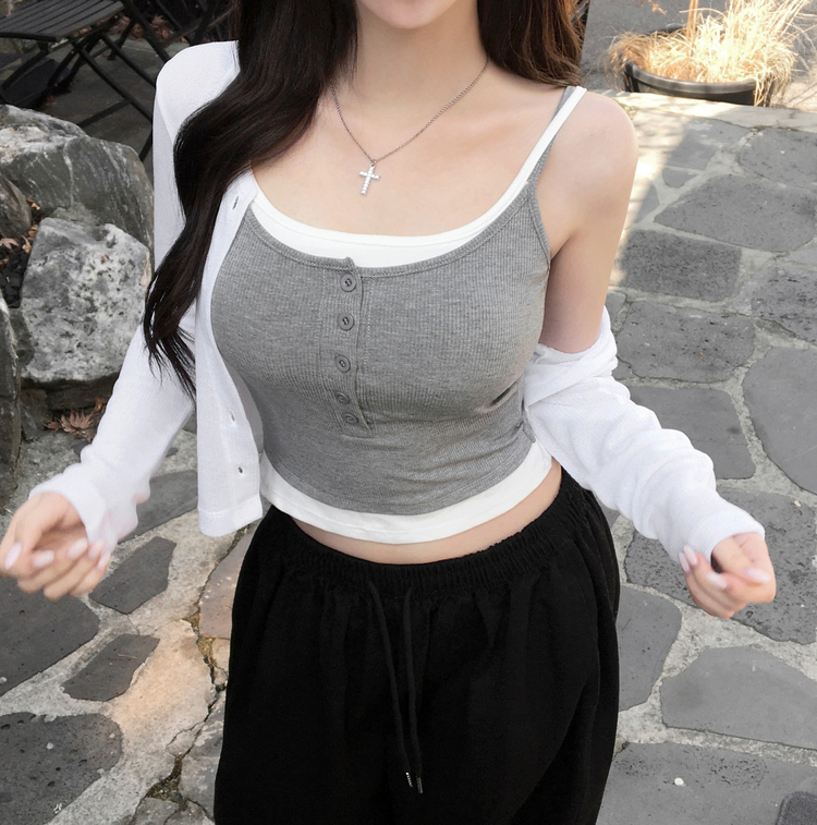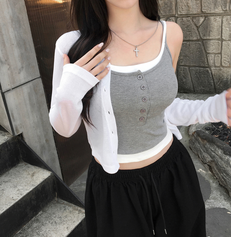 STS244554 케이즈 단추 일체형 캡나시 민소매 슬리브리스 끈나시 골지 슬림핏 허리잘록핏 레이어드 캐주얼 데일리 봄신상봄나시