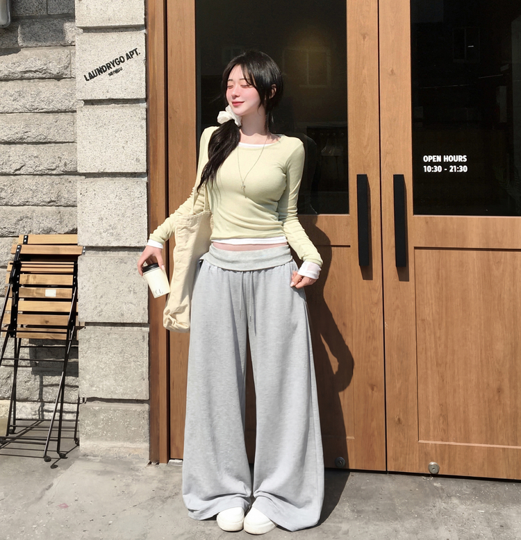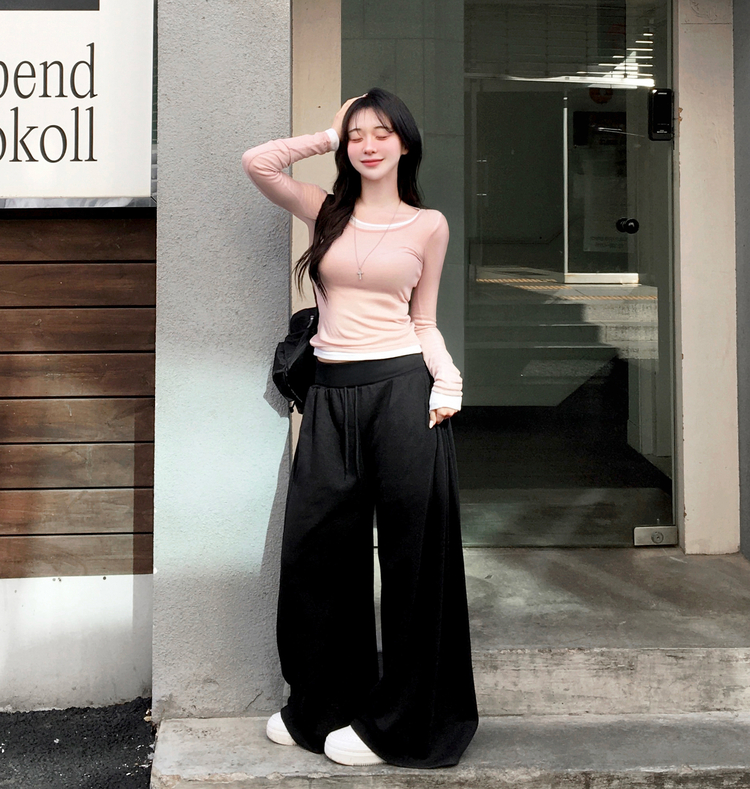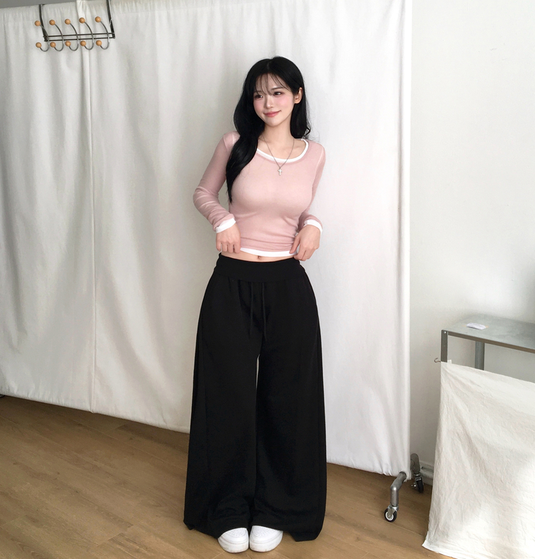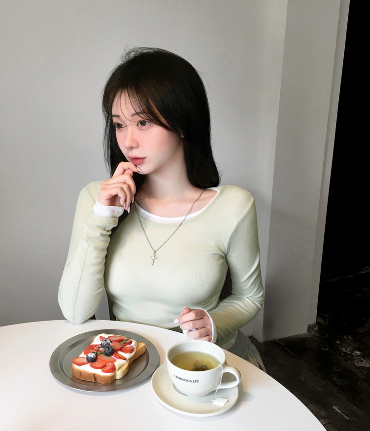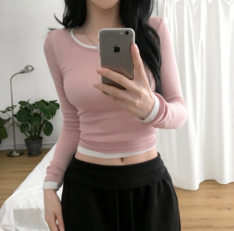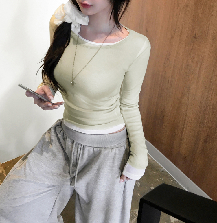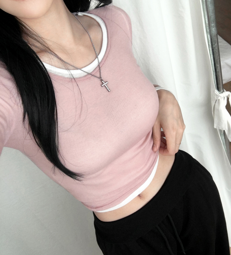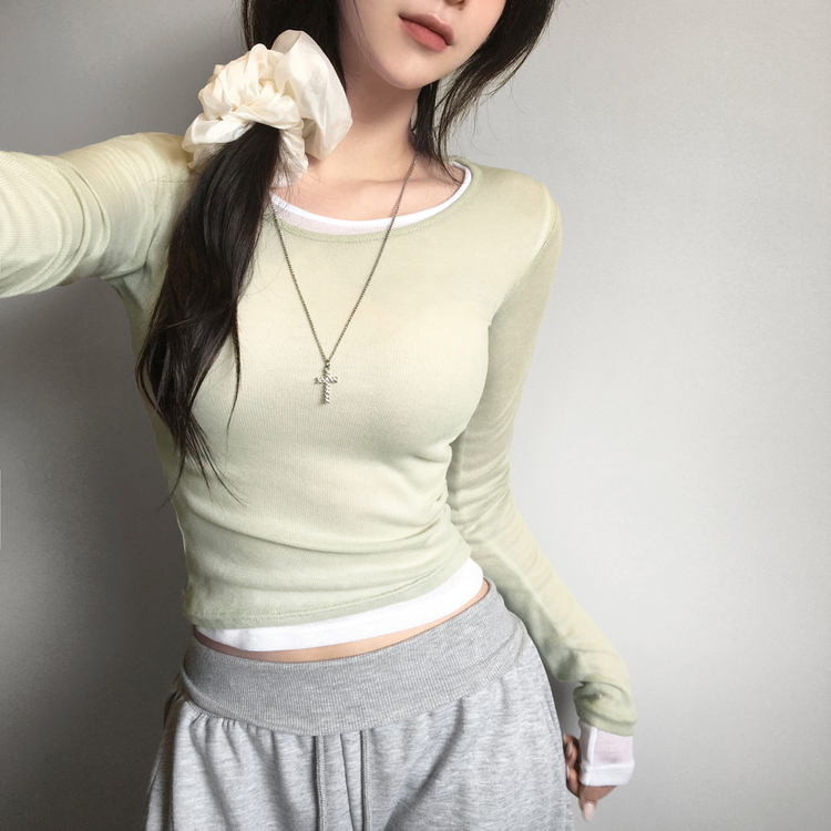 STS244663 멀로즈 시스루 레이어드 티셔츠 긴팔 라운드 쫀쫀 파스텔 슬림핏 러블리 데일리룩 포인트템 봄신상봄레이어드봄컬러