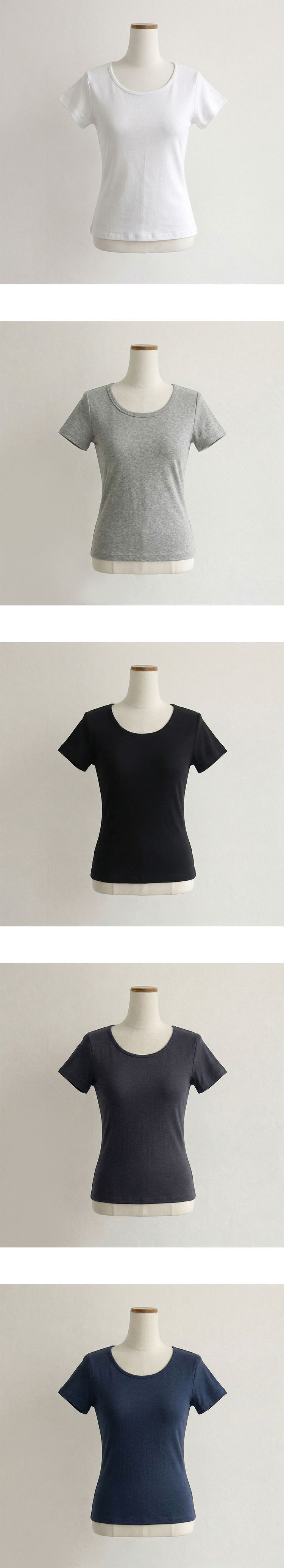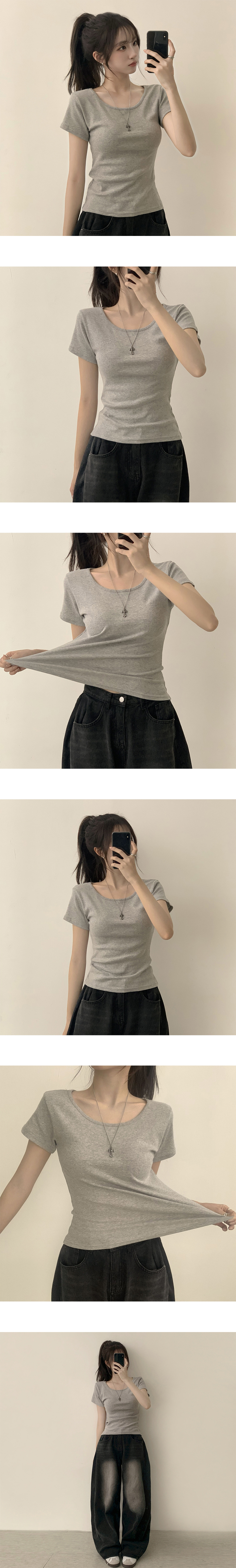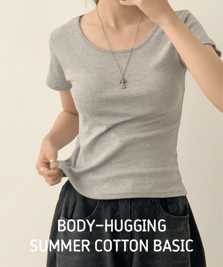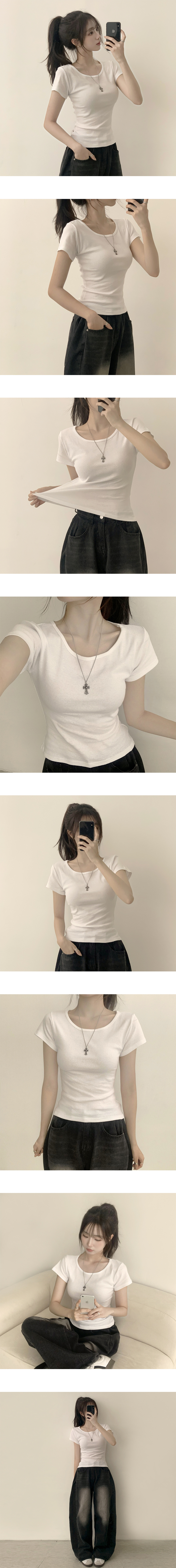 STS244641 [여름필수/살빠진핏!] 쫀~득한 소재감의, 모찌 라운드 무지 봄 여름 세미 크롭 반팔 티셔츠 베이직 반팔티 허리잘록 상의 5color