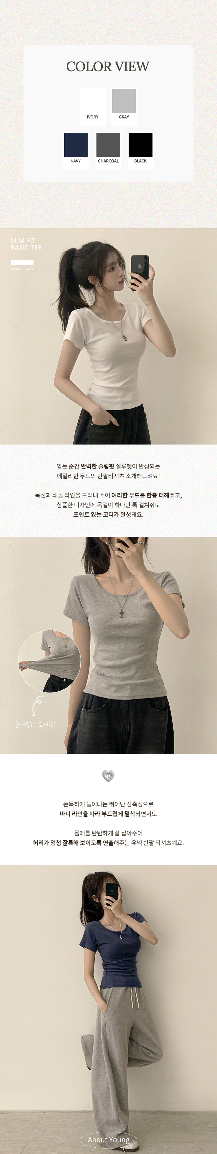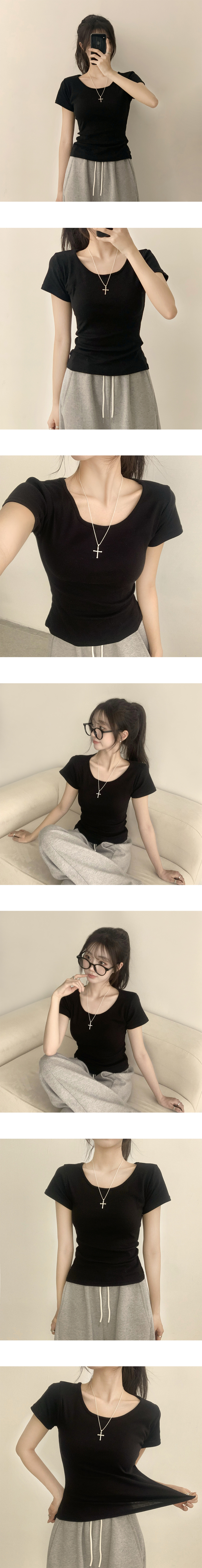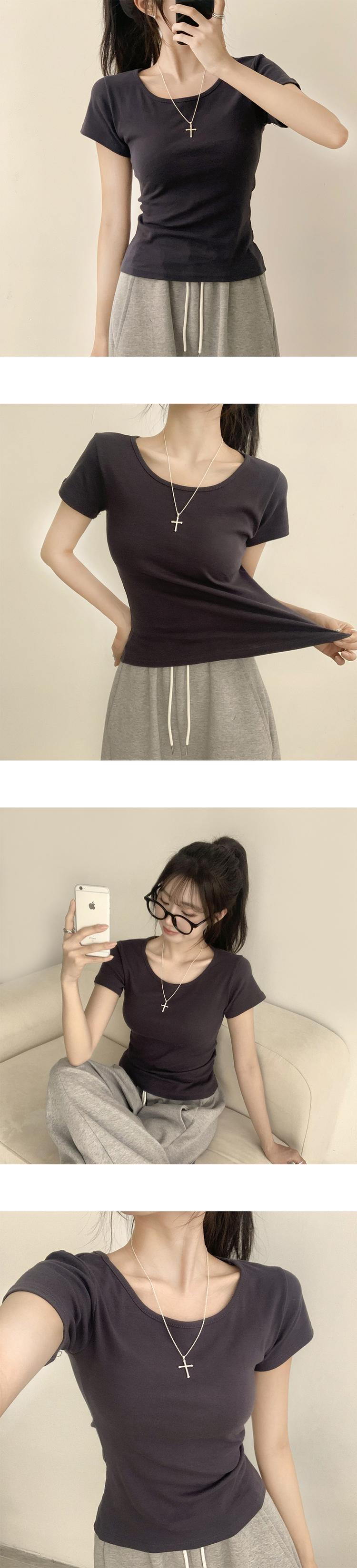 STS244641 [여름필수/살빠진핏!] 쫀~득한 소재감의, 모찌 라운드 무지 봄 여름 세미 크롭 반팔 티셔츠 베이직 반팔티 허리잘록 상의 5color