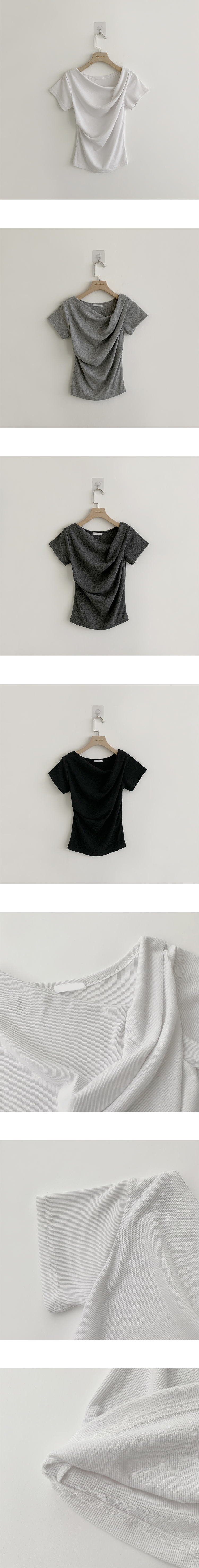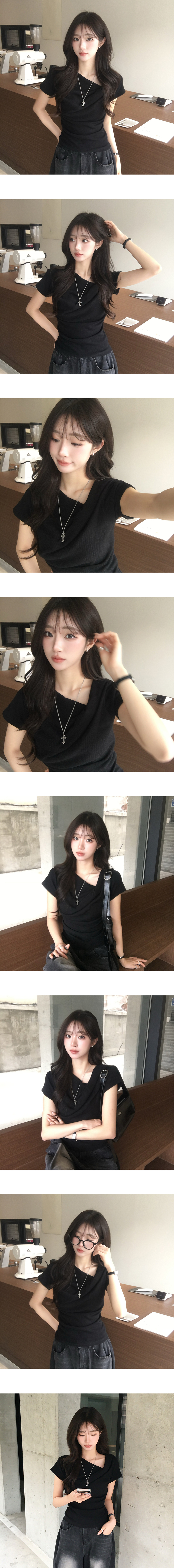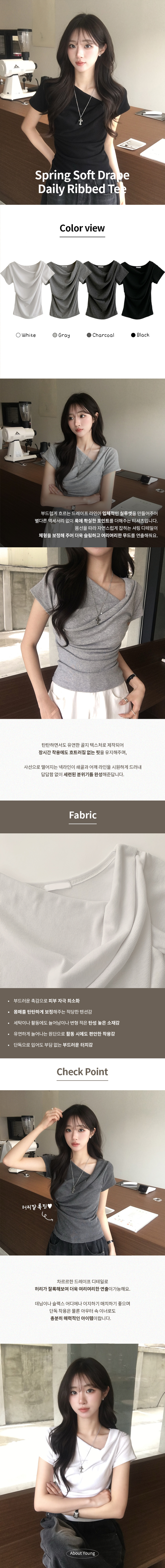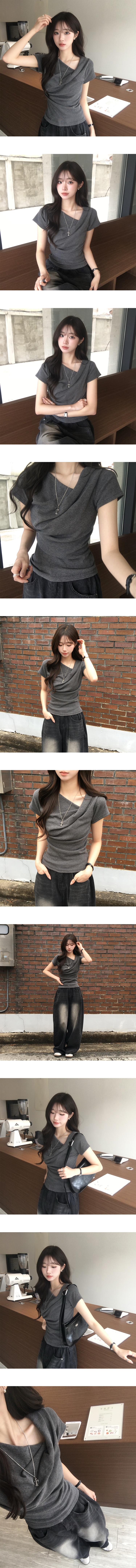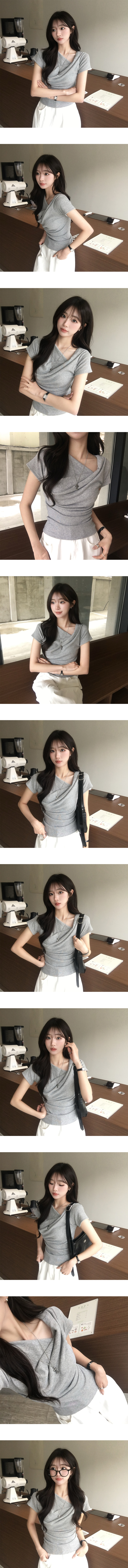 STS245067 드레이프 봄 여름 꼬임 반팔 티셔츠 언발란스 슬림핏 레이어드 블라우스 하객룩 상의 결혼식 코디 반팔티 4color