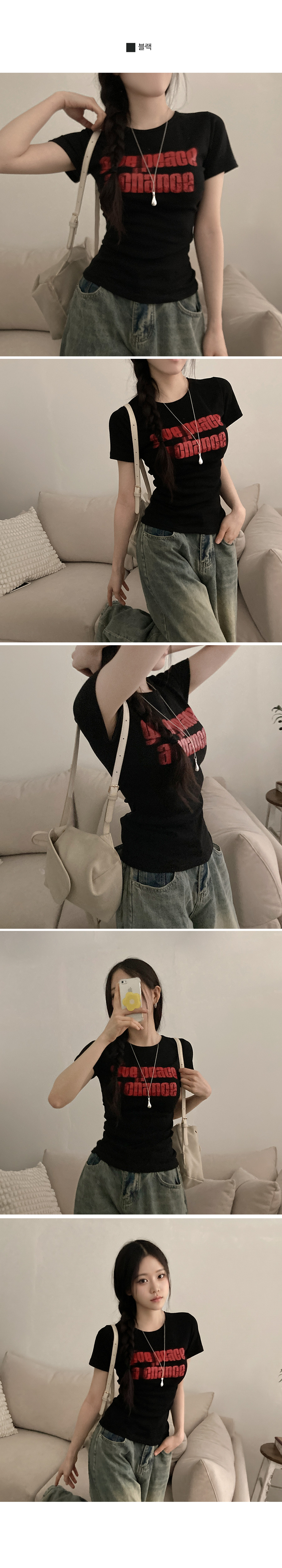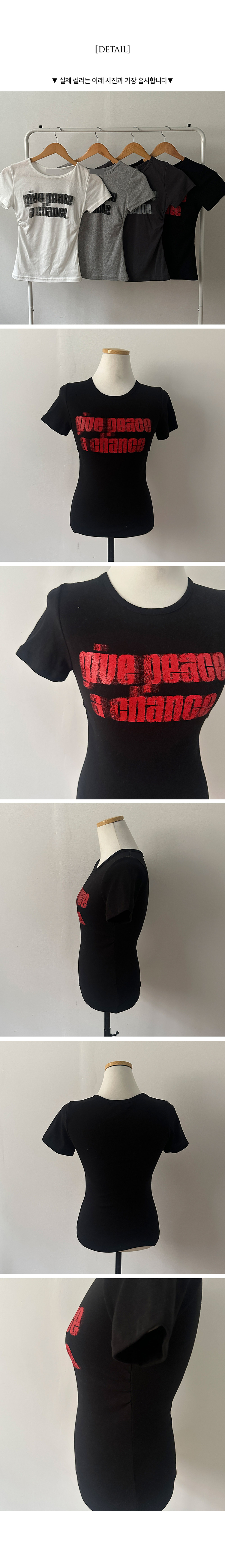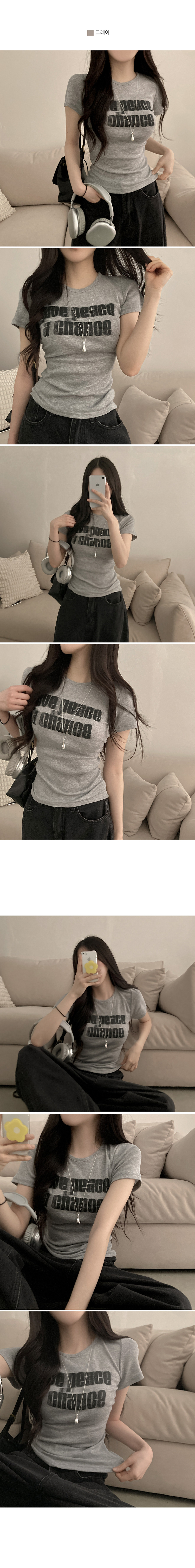 STS245967 피스 레터링 옆셔링 허리잘록 반팔 티셔츠