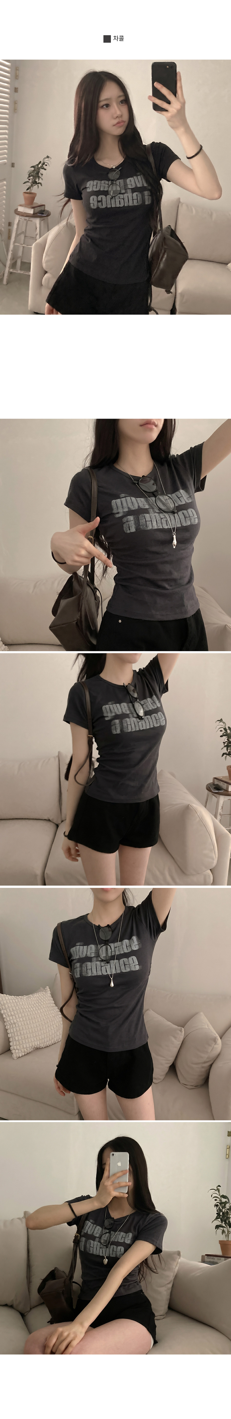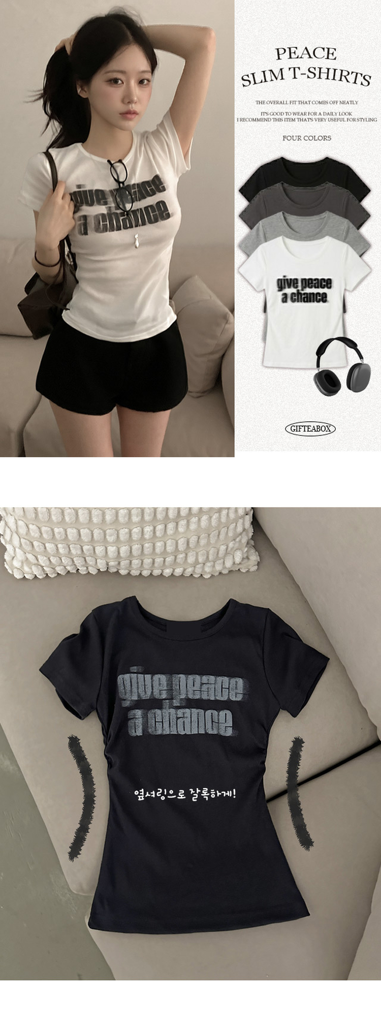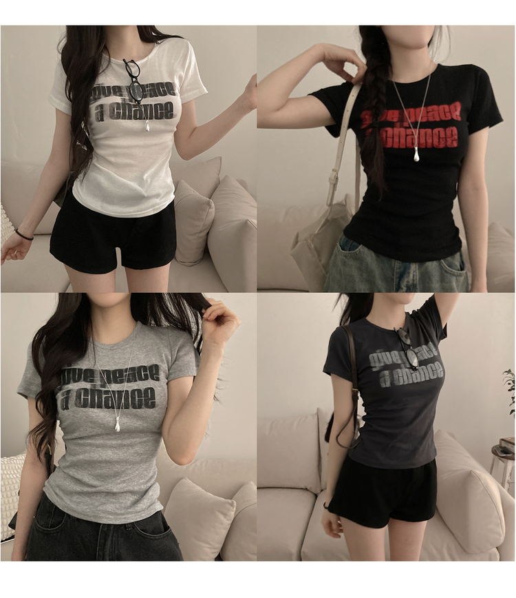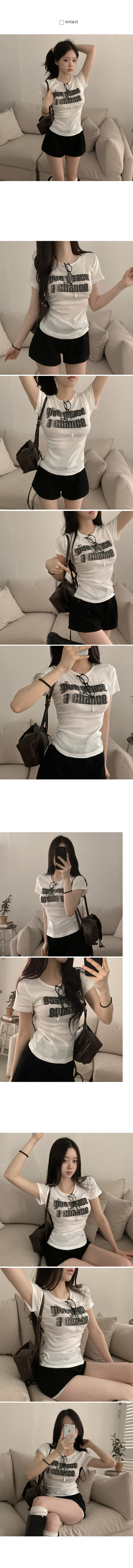 STS245967 피스 레터링 옆셔링 허리잘록 반팔 티셔츠