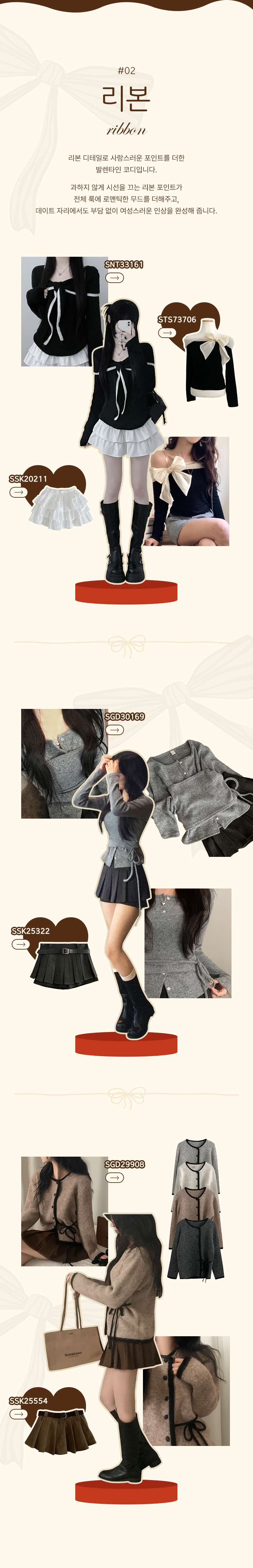 베로나 기모 리본 레이어드 여리핏 니트탑 버튼가디건 셋업