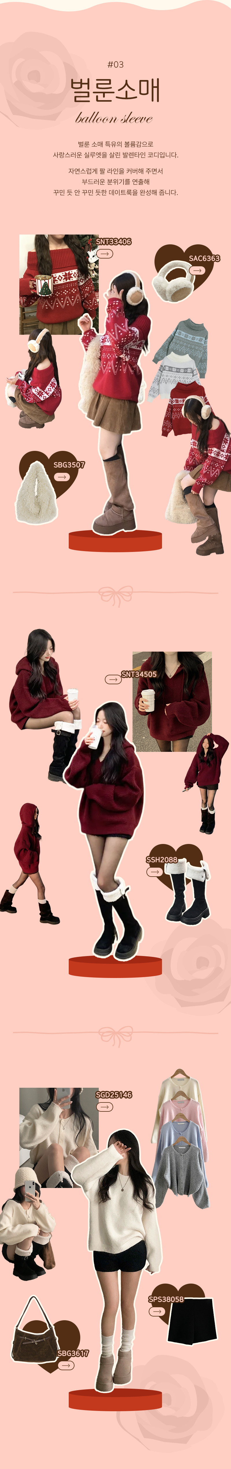 케이블 라운드 꽈배기 벌룬 겨울 레드니트 연말룩 크리스마스룩