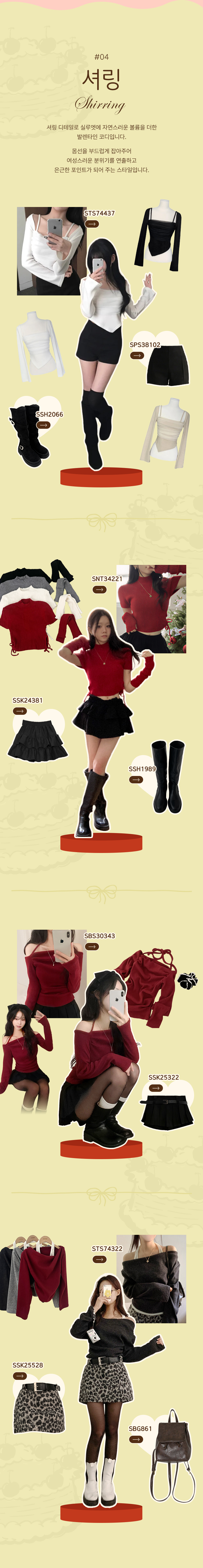 포그니 드레이프 오프숄더 나시 일체형 크롭 셔링 허리잘록 크리스마스 긴팔티 겨울옷