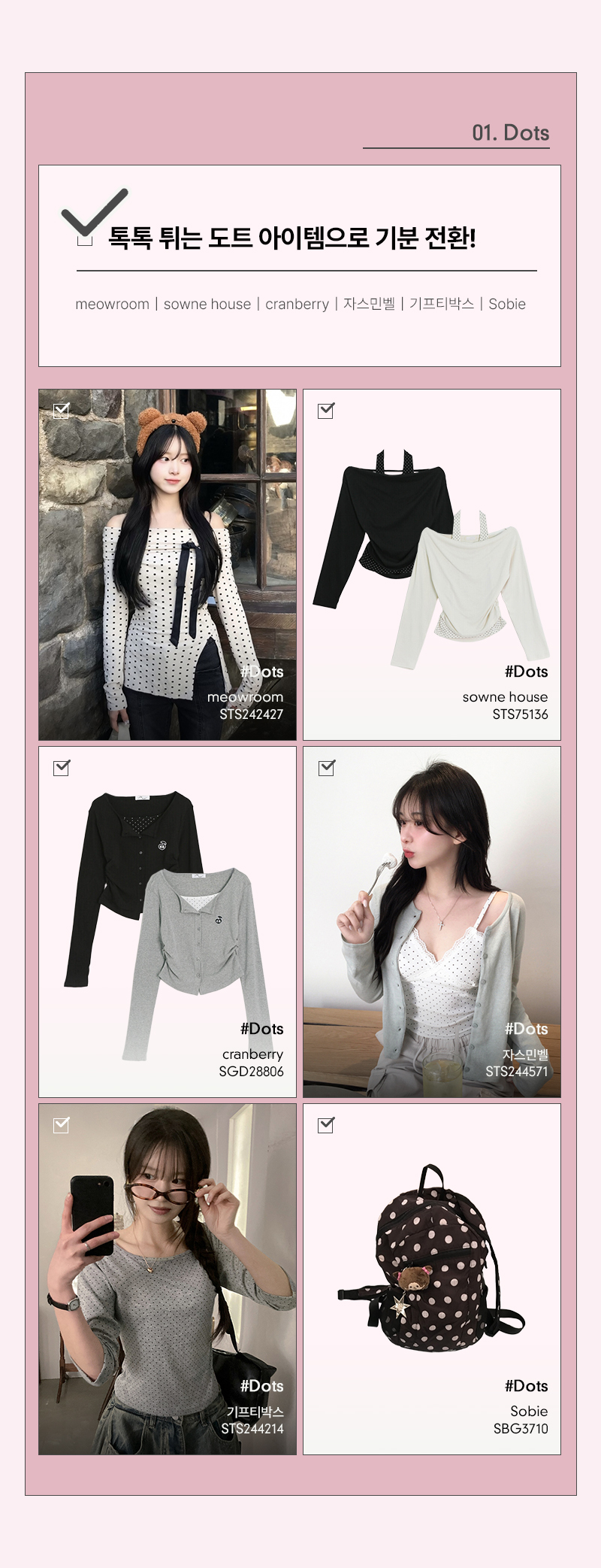 도트 패턴 오프숄더 탑