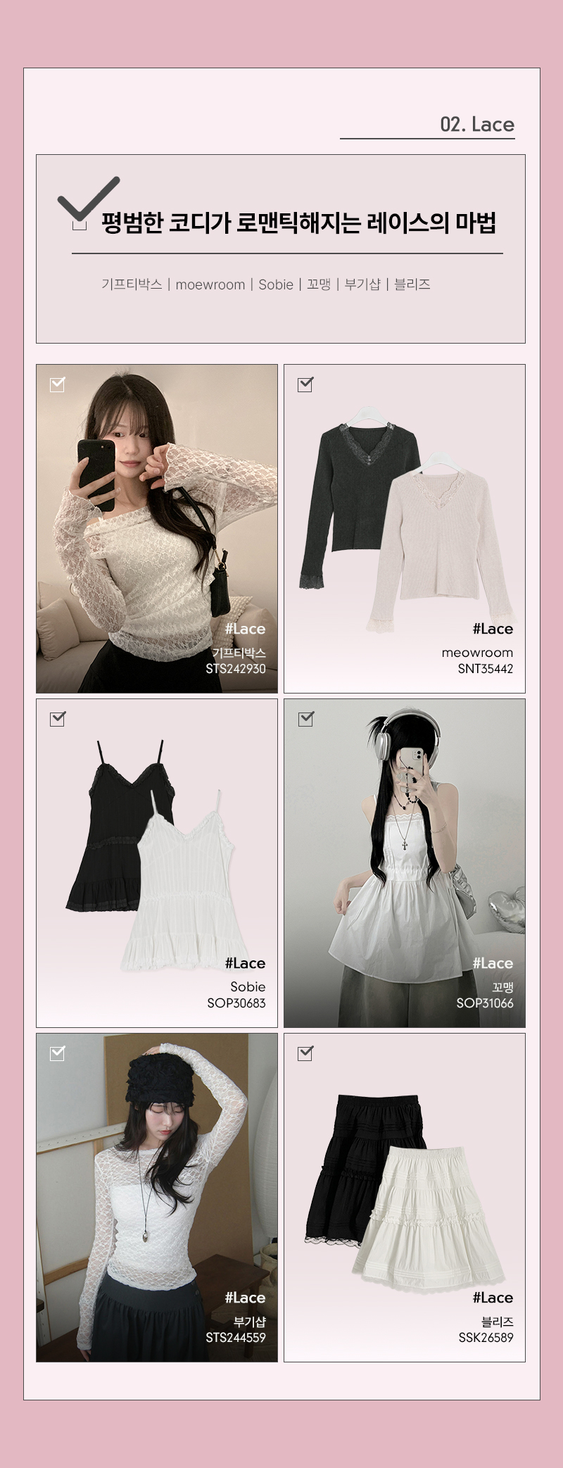 로제 레이스 드레이프 시스루 오프숄더 나시 투피스 세트