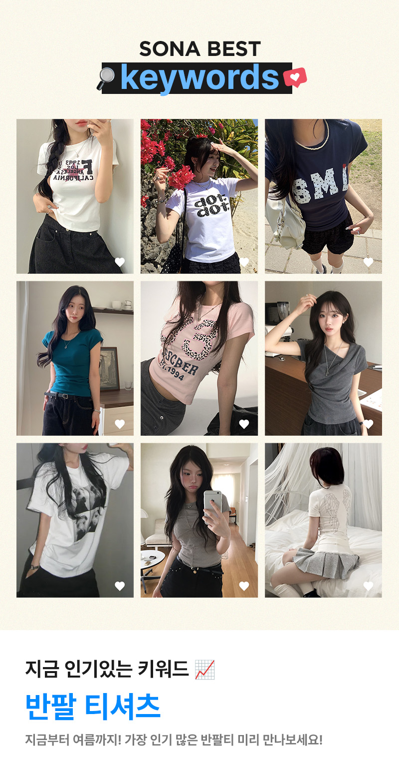 하트 골지 반팔 티셔츠